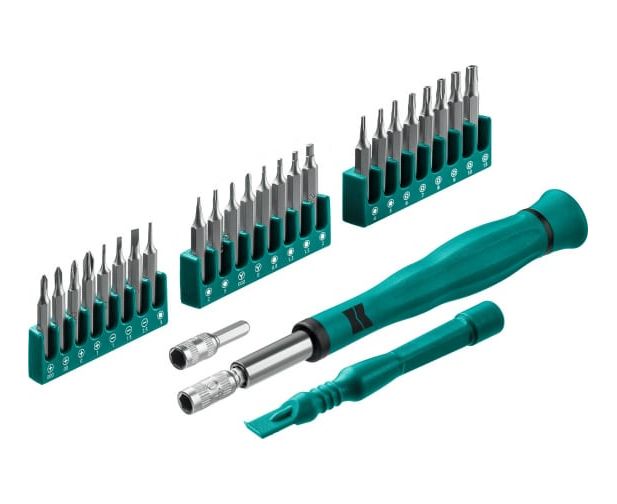 Расширенная комплектация включает в себя специальные биты для ремонта популярных мобильных устройств