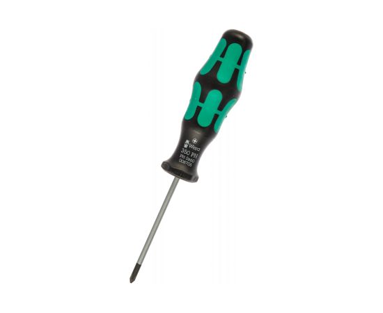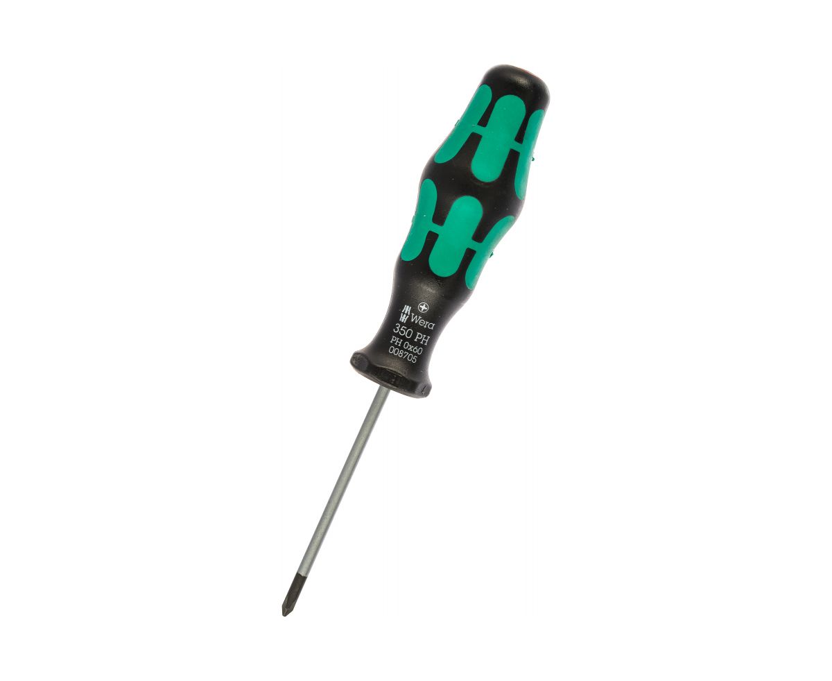 Отвёртка 350 PH 0х60 мм Wera WE-008705 - это профессиональный ручной инструмент для винтов с крестовым шлицем. Она имеет небольшой вес и малые габариты, поэтому её удобно хранить.