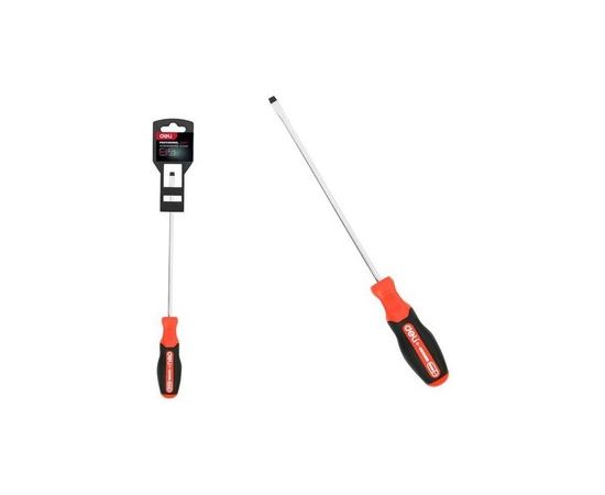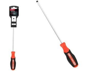 Отвертка шлицевая DELI DL3450 SL6x200мм сталь S2, матовый стержень, двухкомпонентная прорезиненная рукоять