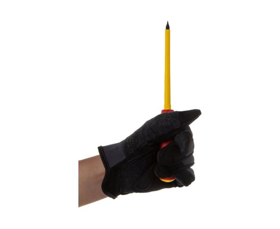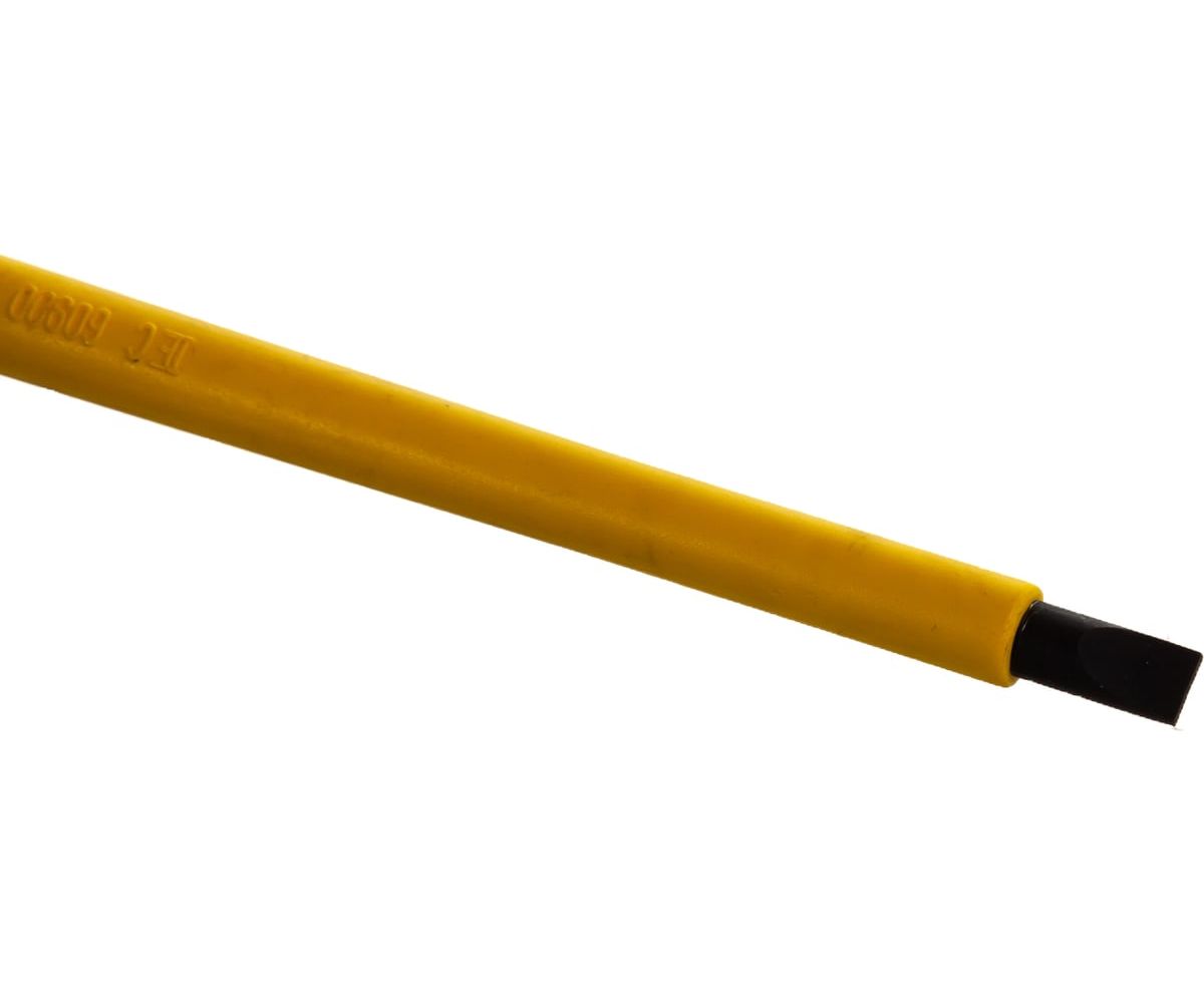 Шлицевая отвертка NEO 5.5x125 мм 1000 В CrMo 04-054 выдерживает значительное усилие вращения за счет прочного стержня.