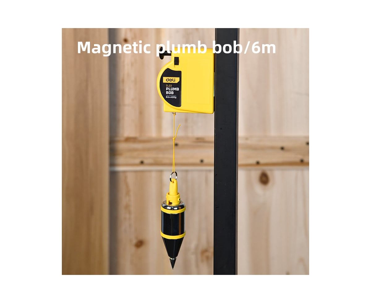 Отвес Deli DL22 конусный с магнитным держателем вес 400гр, длина нити 6м, автоматическое втягивание