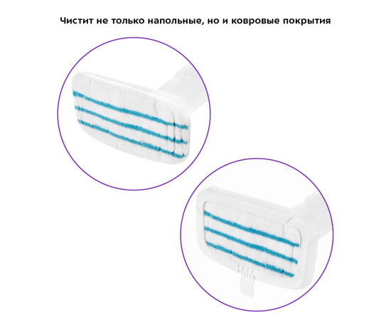 Тряпка надёжно фиксируется на боковые липучки щётки, отлично впитывает влагу и чистит пол. Чтобы убирать ковровые покрытия с недлинным ворсом, у КТ-1052 есть рамка, которая крепится на щётку и тряпку и облегчает её скольжение по ковру.