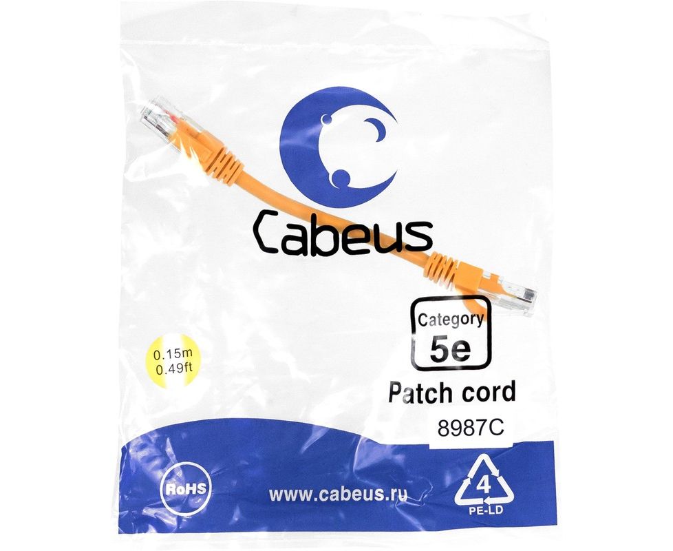 Патч-корд Cabeus PC-UTP-RJ45-Cat.5e-0.15m-OR-LSZH неэкранированный, оранжевый