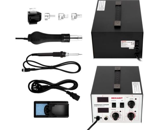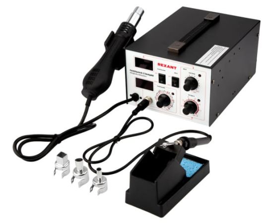 Паяльная станция REXANT R852AD 12-0724 обладает двумя функциями - фен и паяльник.