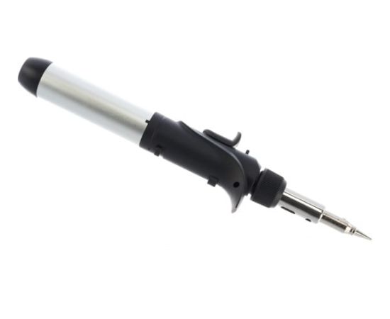 Этот инструмент оборудован пьезоподжигом пламени, а также предохранителем от случайного зажигания. Паяльник используется для точных работ по дереву, металлу, пластику.