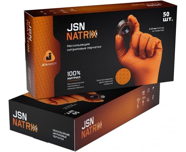 Преимущества нескользящих одноразовых перчаток Jeta Safety JSN NATRIX оранжевые, размер L JSN 50 NATRIX OR 09
