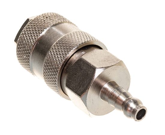 Переходник рапид – ёлочка 6 мм с обжимным кольцом 6-11 мм Elitech 0704.018200 применяется для соединения различных частей пневмосистем. С одной стороны фитинг имеет ёлочку — 6 мм, с другой быстросъемное соединение — рапид мама. Созданная конструкция обладает высокой надежностью и герметичностью.