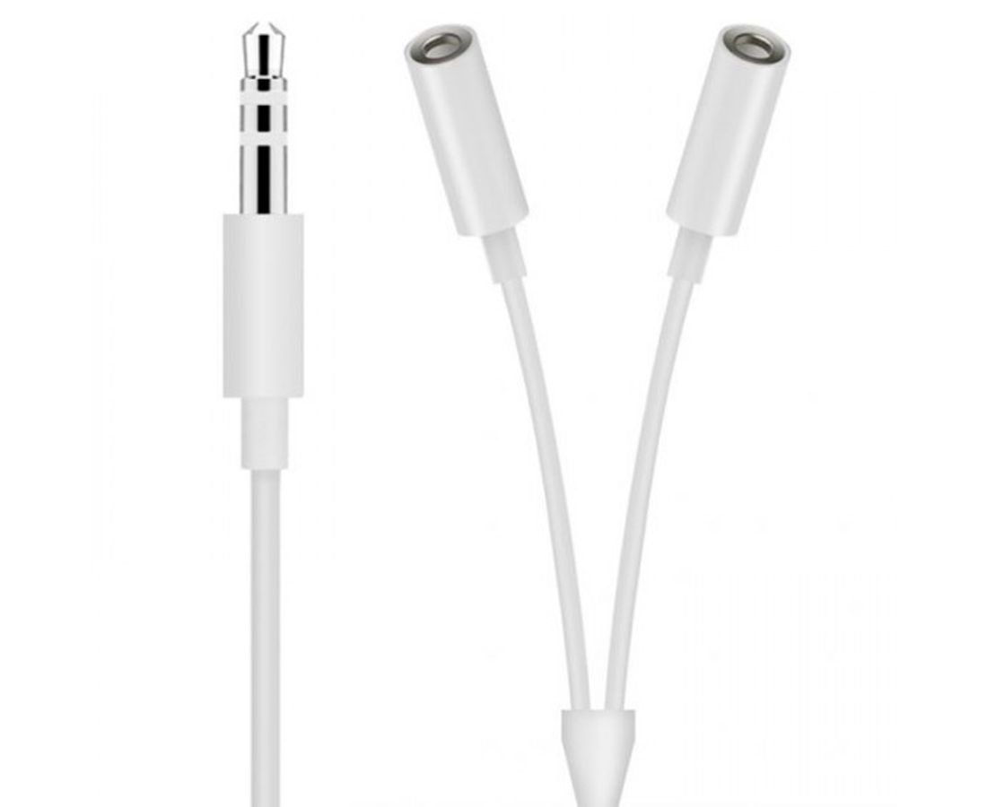 Переходник MH028 3.5, Jack 3.5 - Jack 3.5 dual, белый, Male to Dual Female