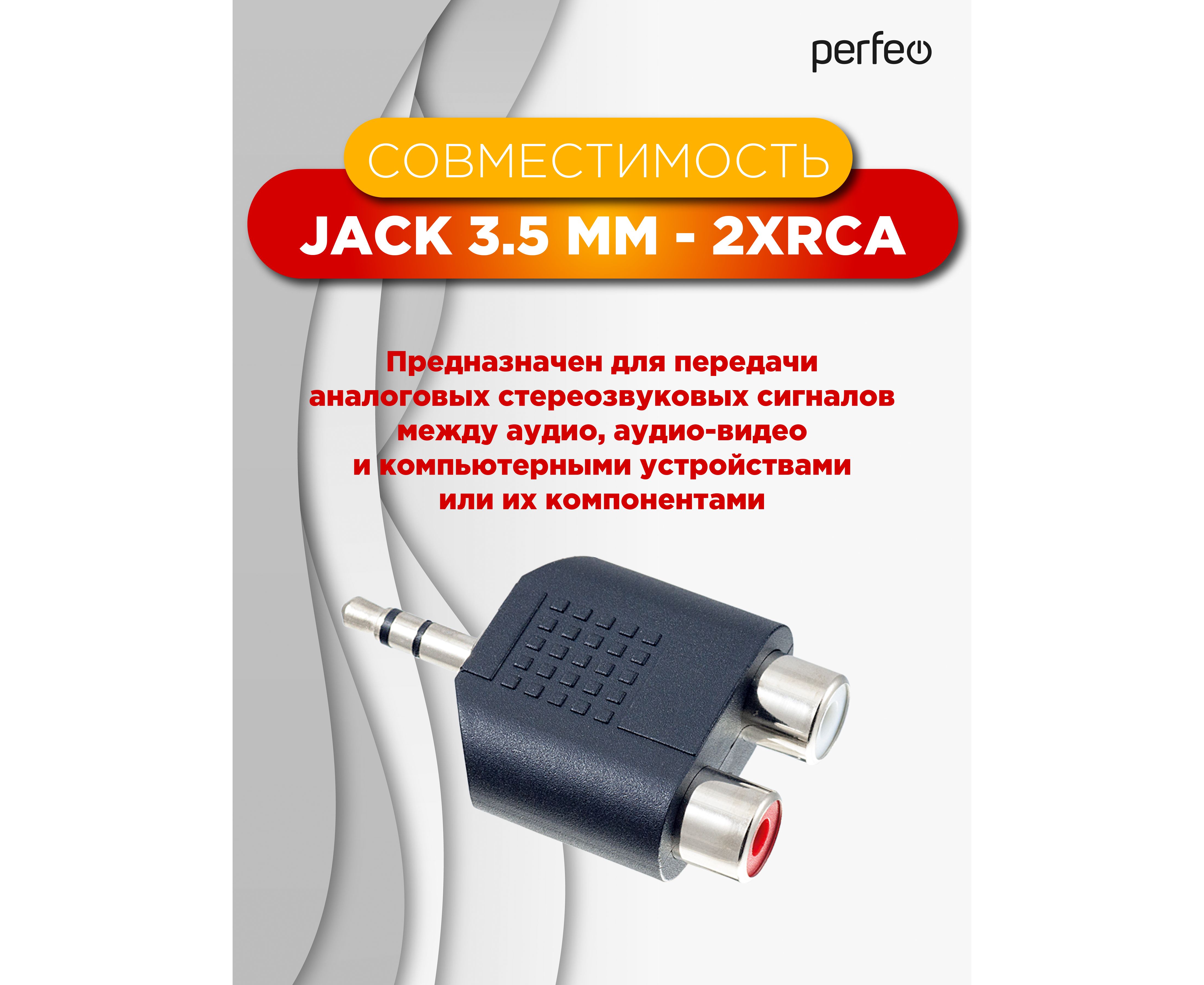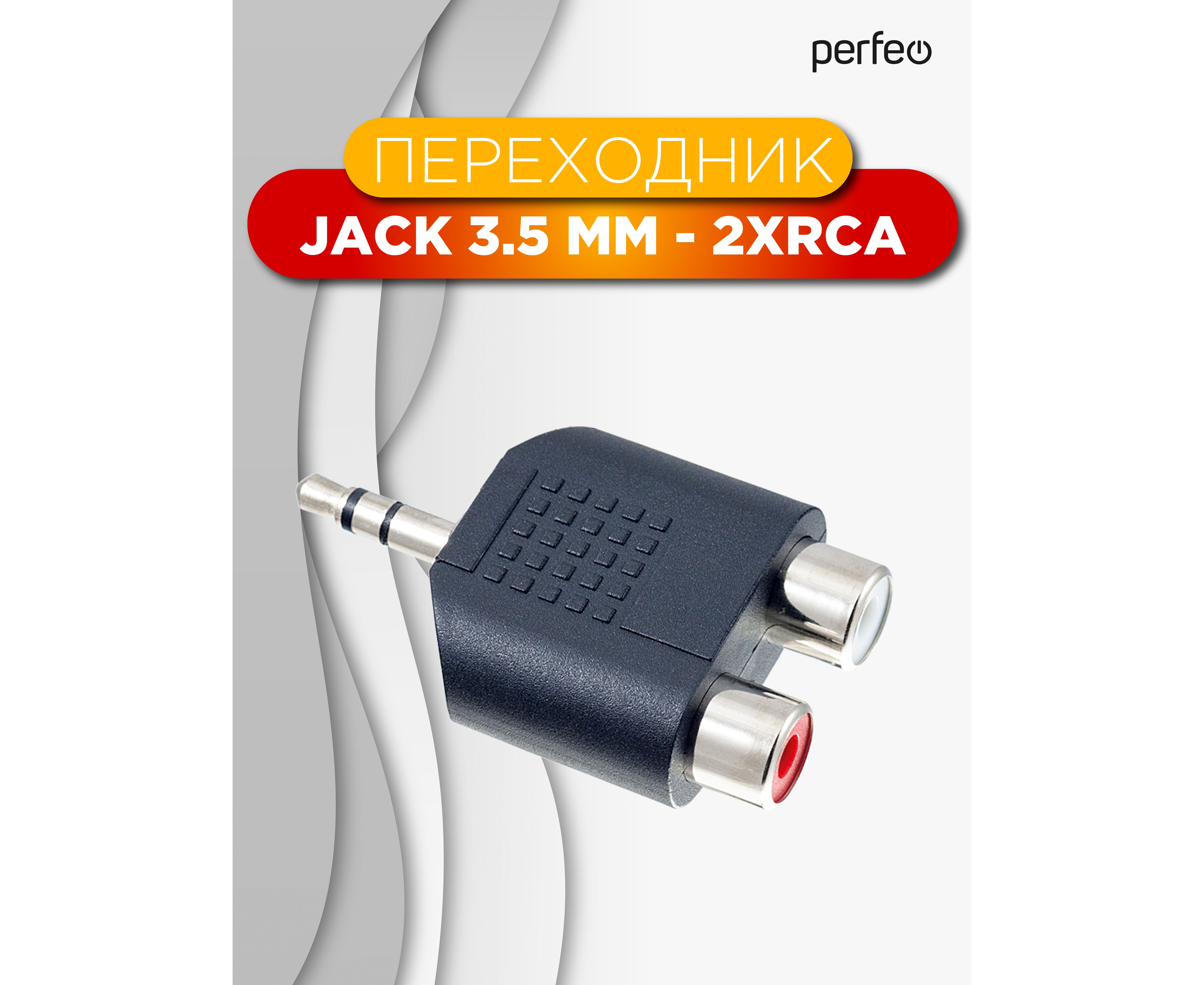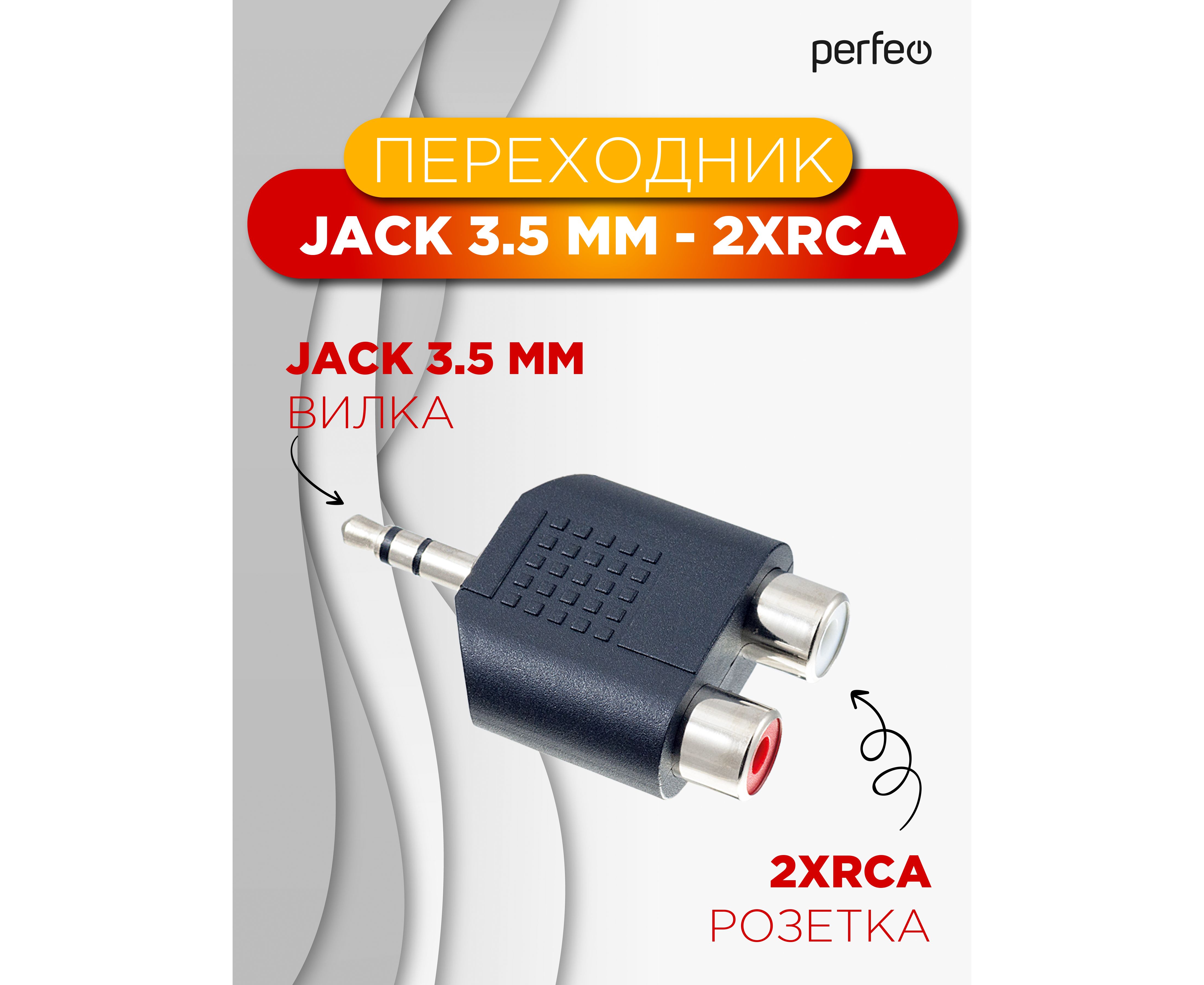 Переходник PERFEO Jack 3.5 мм (стерео) вилка - 2xRCA розетка (A7012)