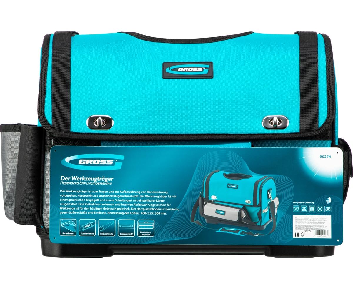 Переноска для инструментов GROSS 90274 400x225x300мм, пластиковое дно, наплечный ремень
