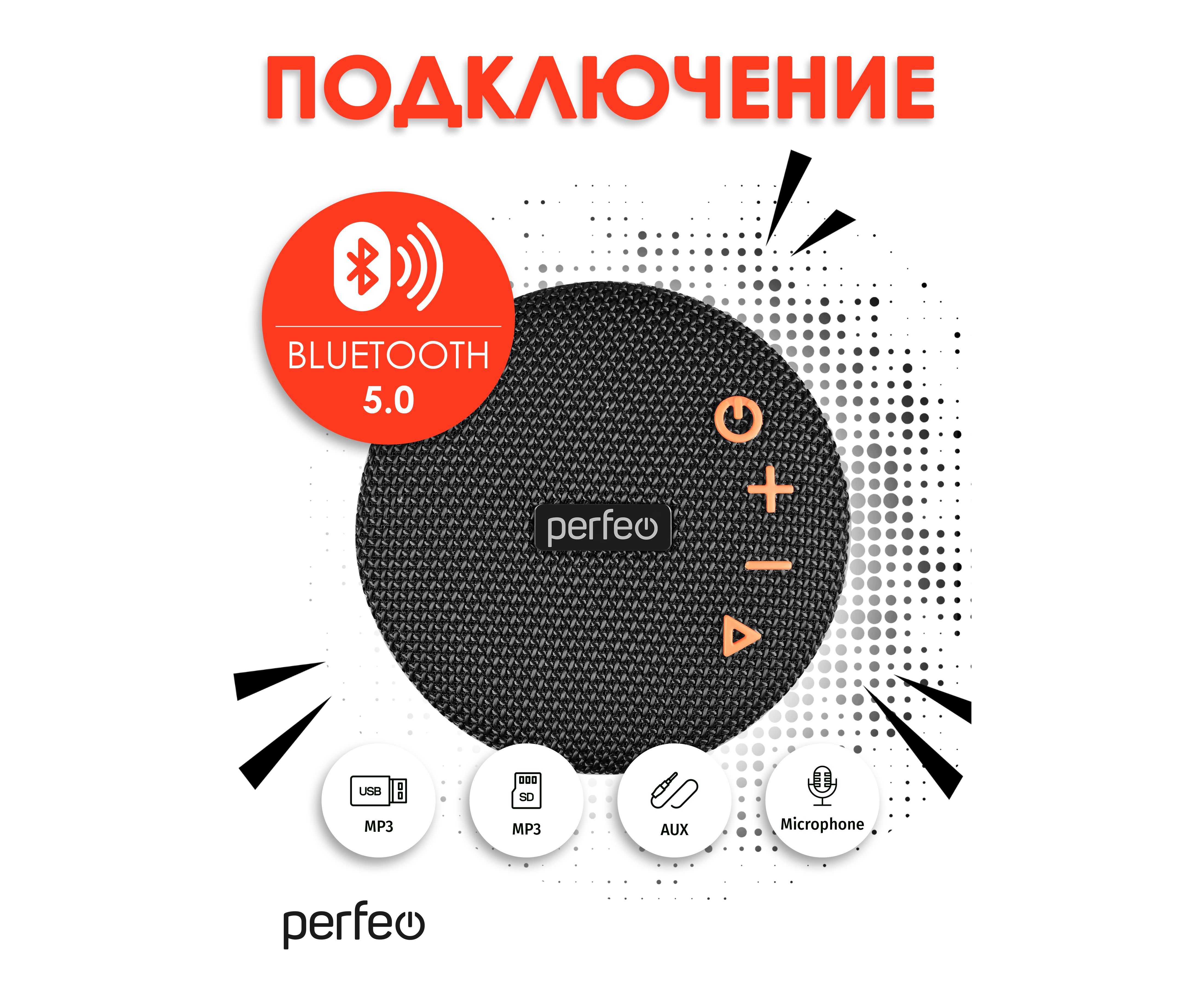 Perfeo Bluetooth-колонка "POP" FM, MP3 microSD/USB, AUX in, TWS, мощность 6Вт, 1200mAh, черная