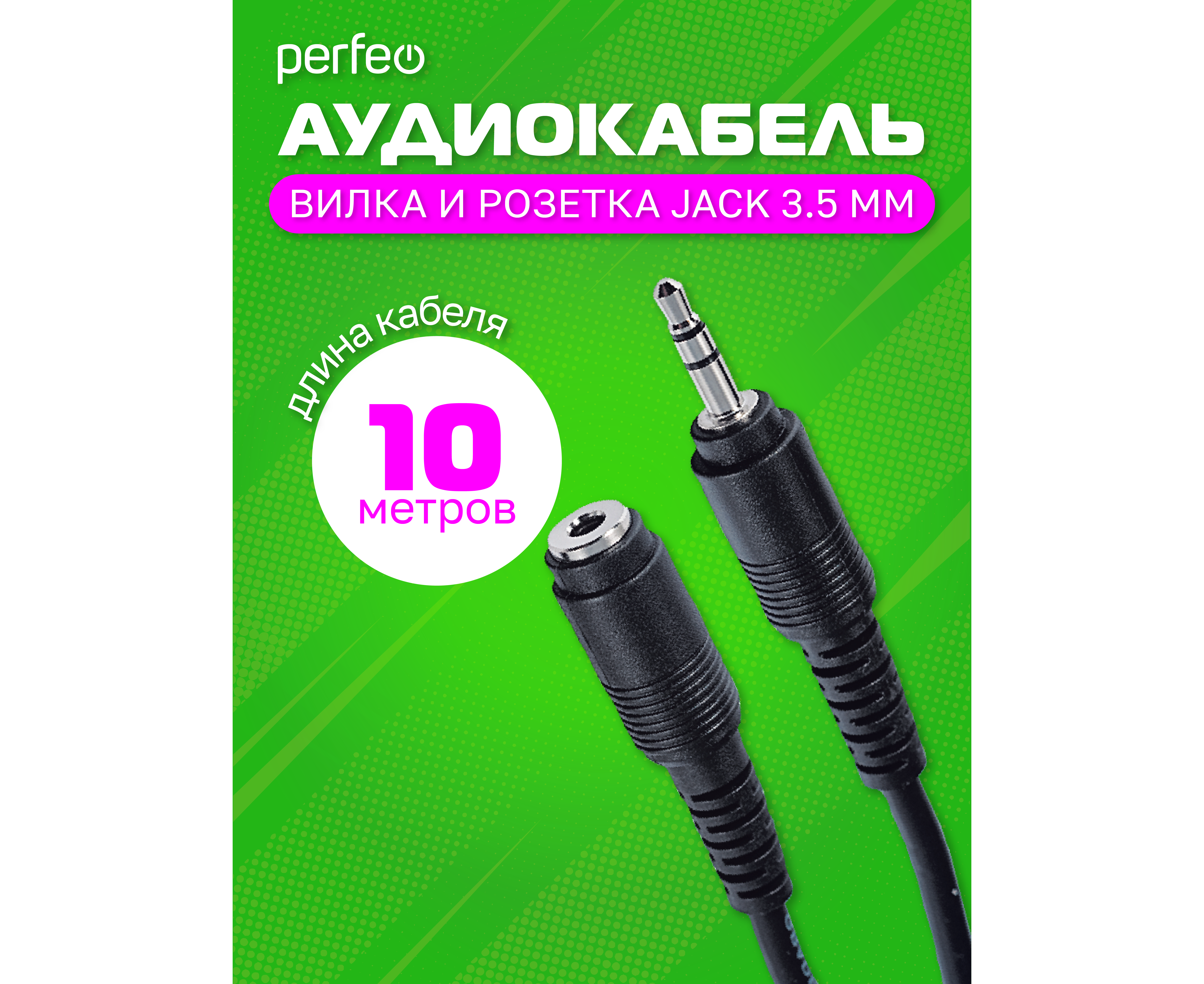 PERFEO Кабель Jack 3.5 мм вилка - Jack 3.5 мм розетка, длина 10 м. (J2204)