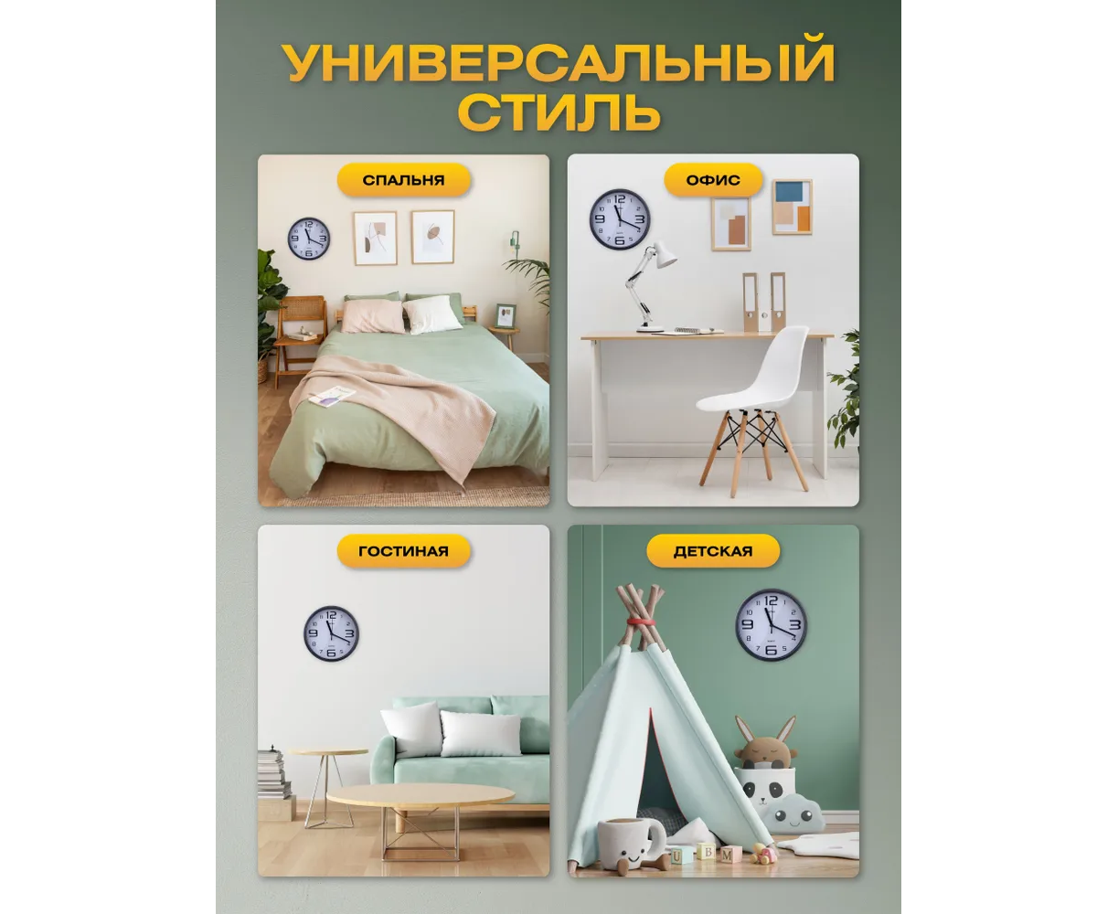 Наши бесшумные настенные часы идеально подойдут для любого помещения, будь то кухня, гостиная или спальня. Эти часы не только помогают следить за временем, но и служат великолепным декором на стену, добавляя изюминку в ваш интерьер.