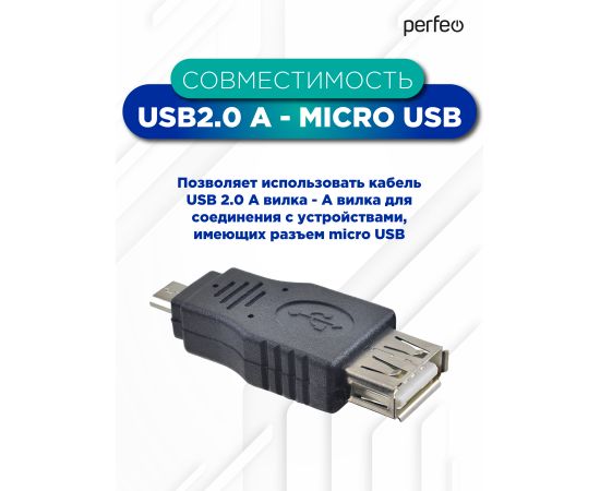 PERFEO Переходник USB2.0 A розетка - Micro USB вилка (A7015)