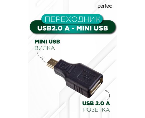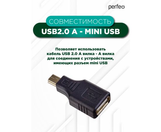 PERFEO Переходник USB2.0 A розетка - Mini USB вилка (A7016)