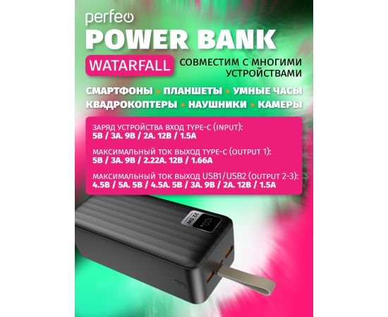 Повербанк Perfeo Powerbank 40000 mAh/LED дисплей/PD + QC 3.0/Type-C/2 USB/Выход: 5A, max 22.5W/черный