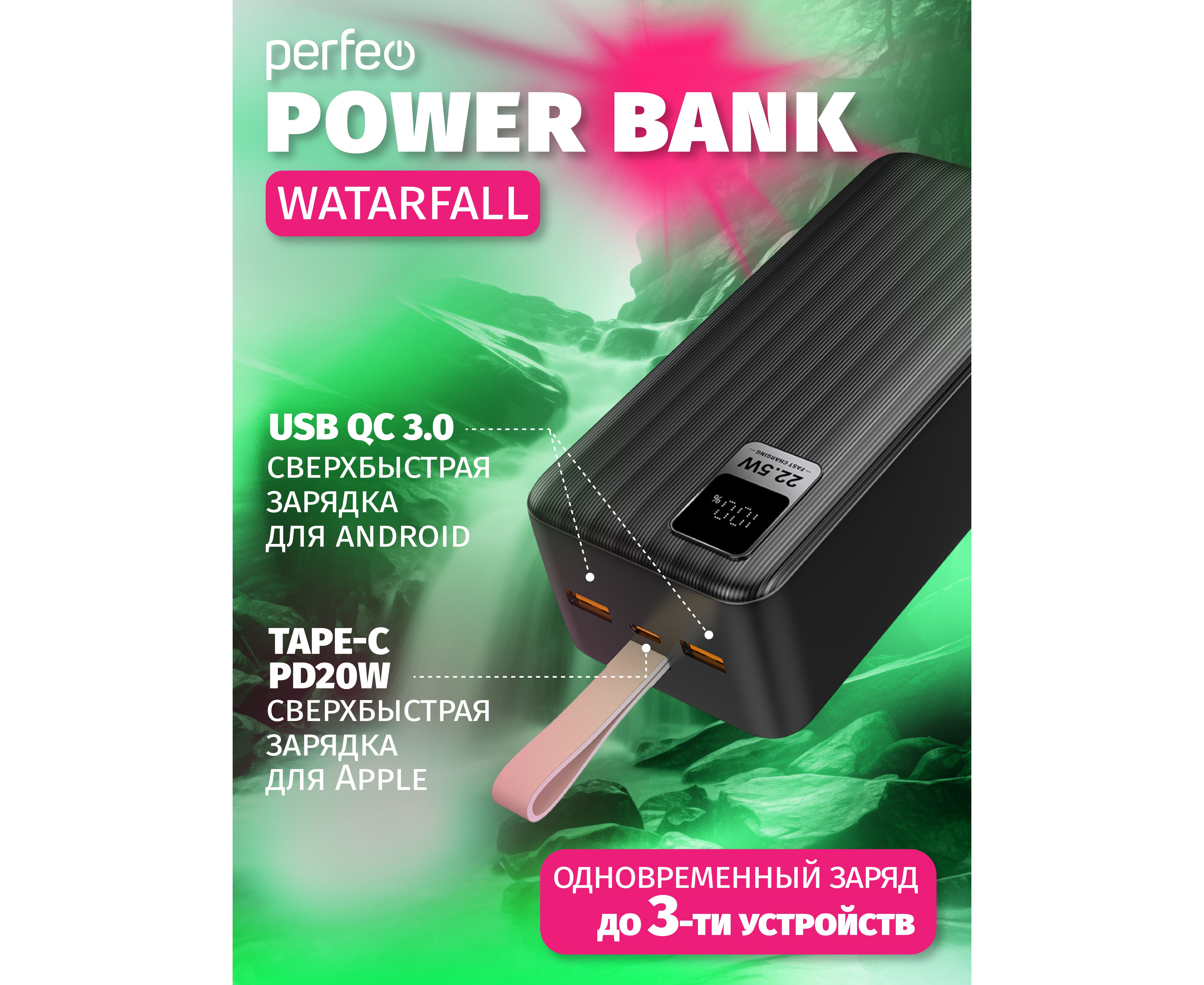 - Поддержка QC3.0 + PD 22.5W