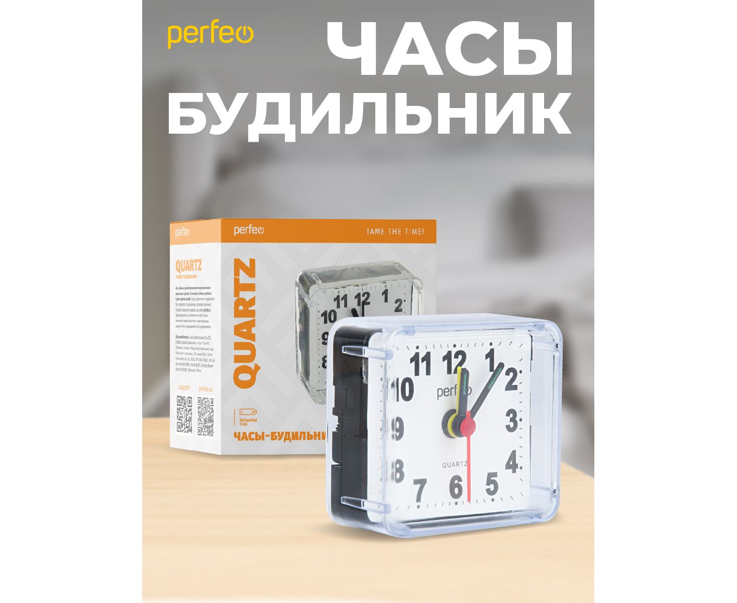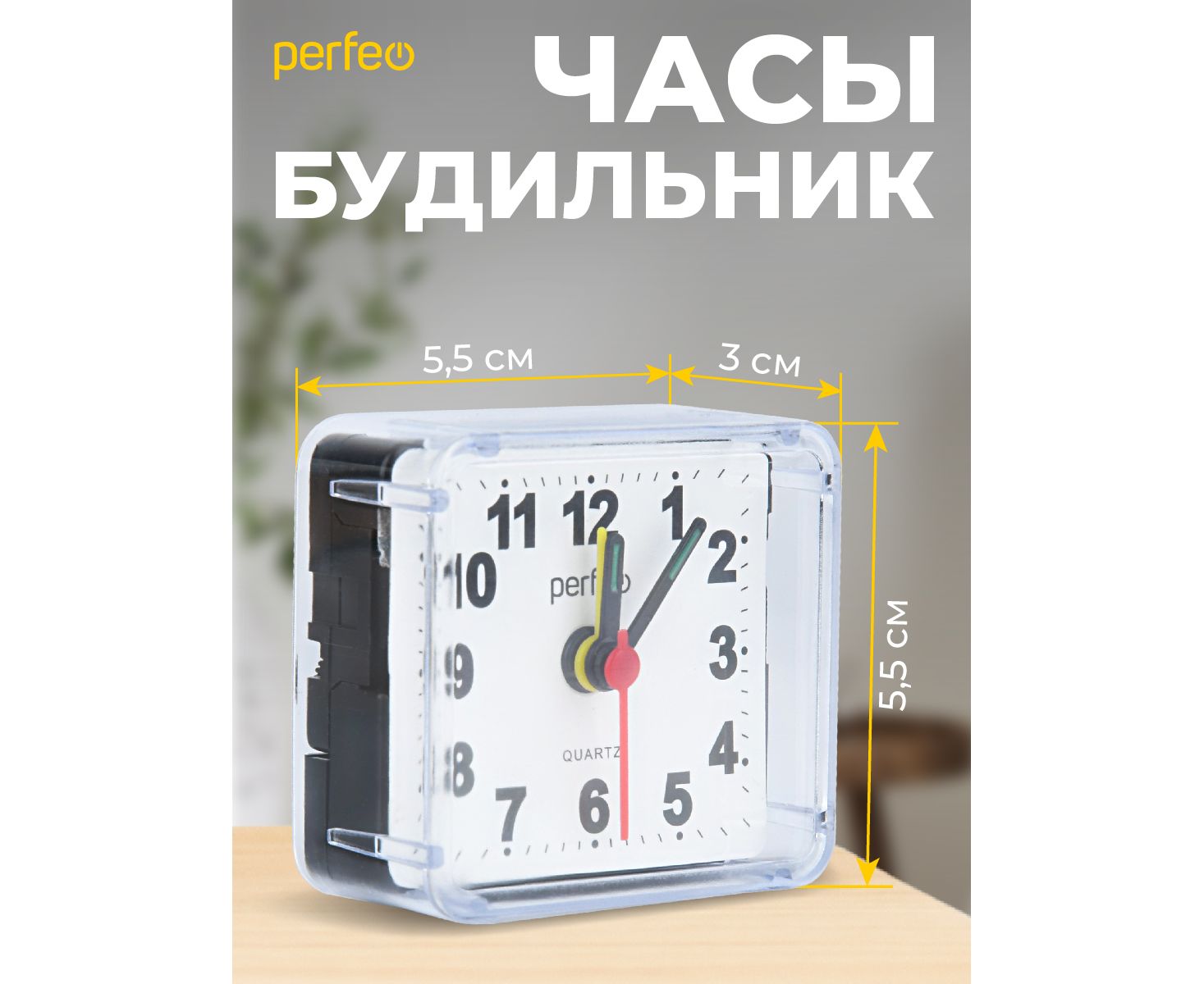 Часы-будильник Perfeo Quartz "PF-TC-001", квадратные 5,5*5,5 см, белые
