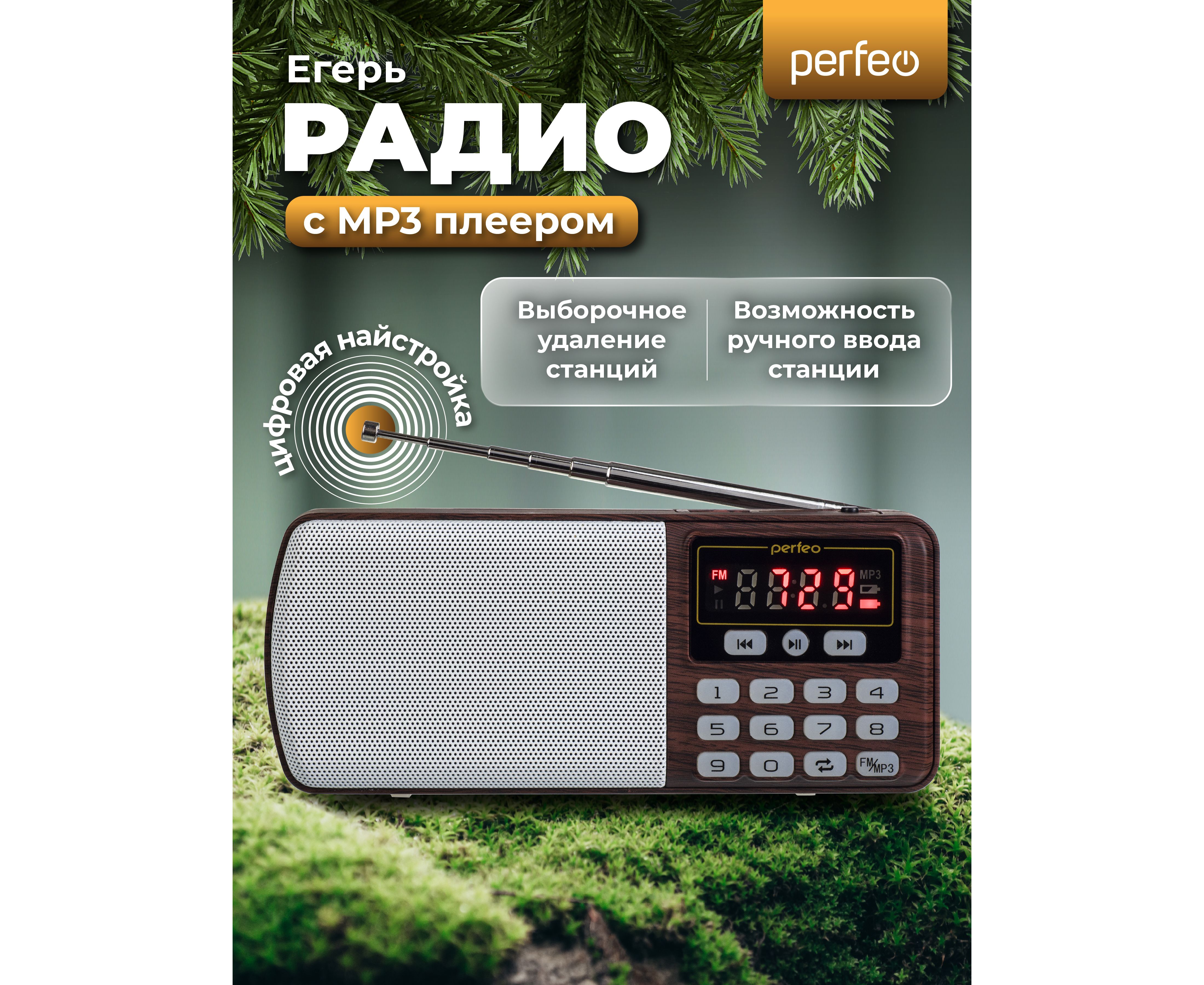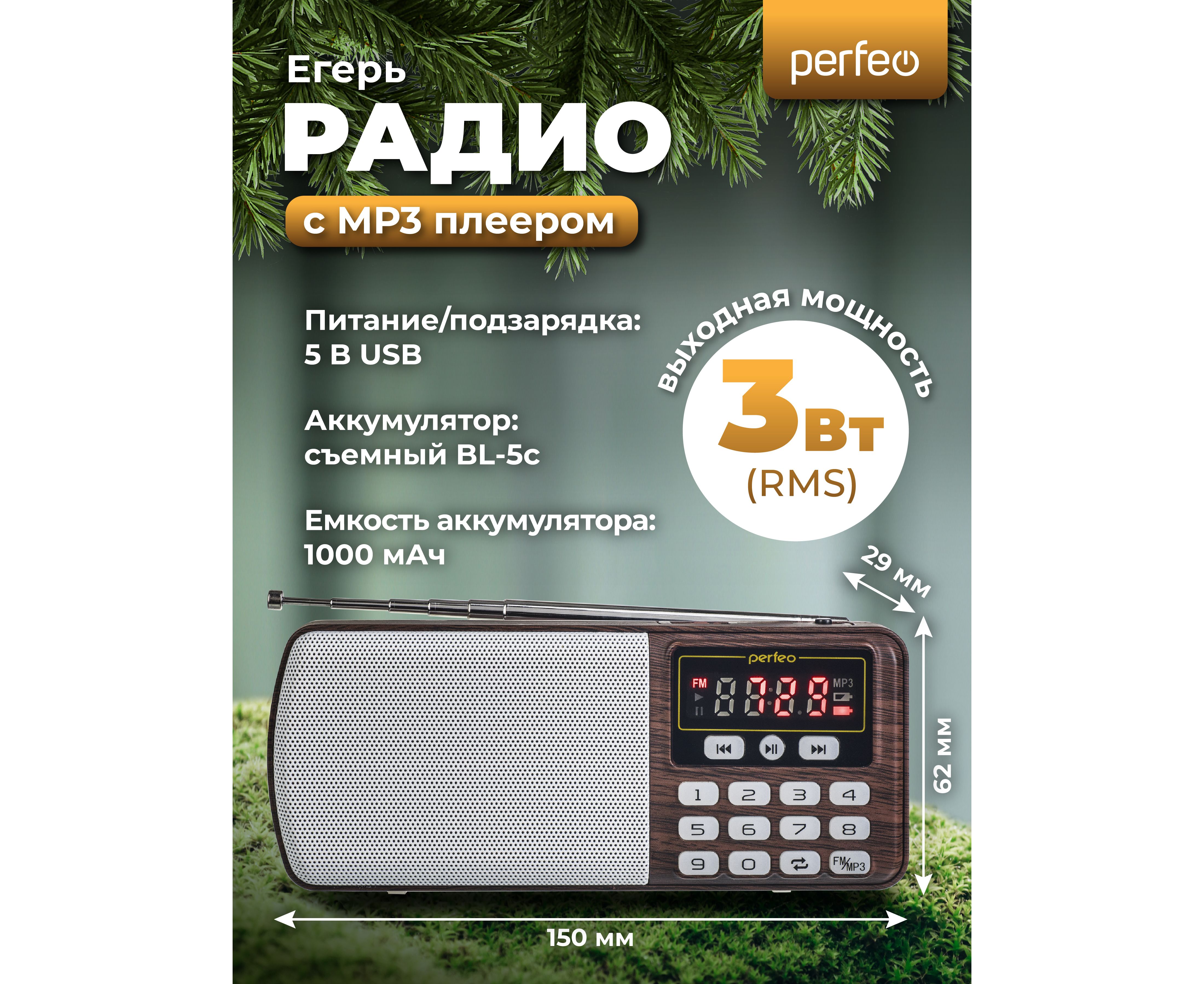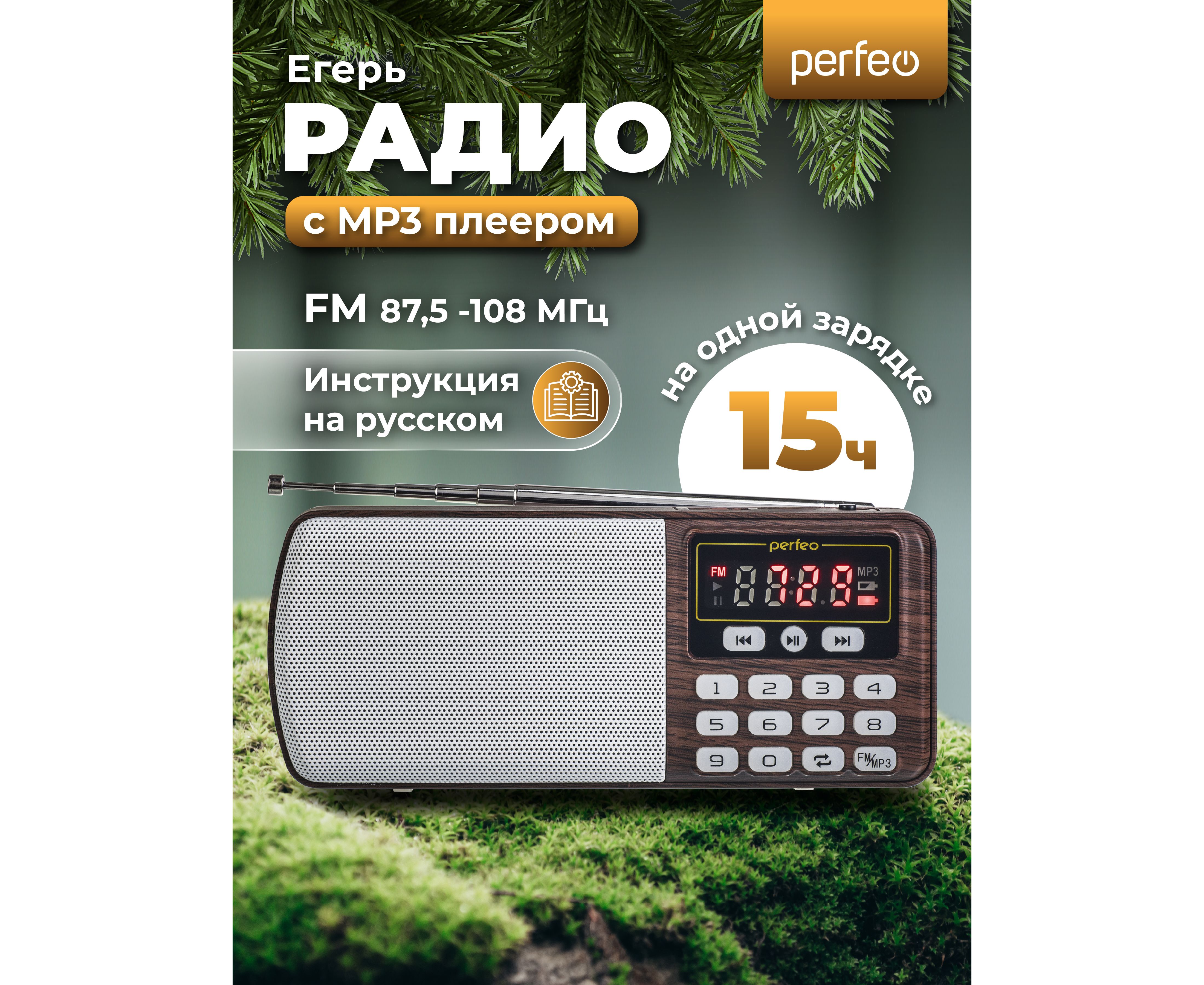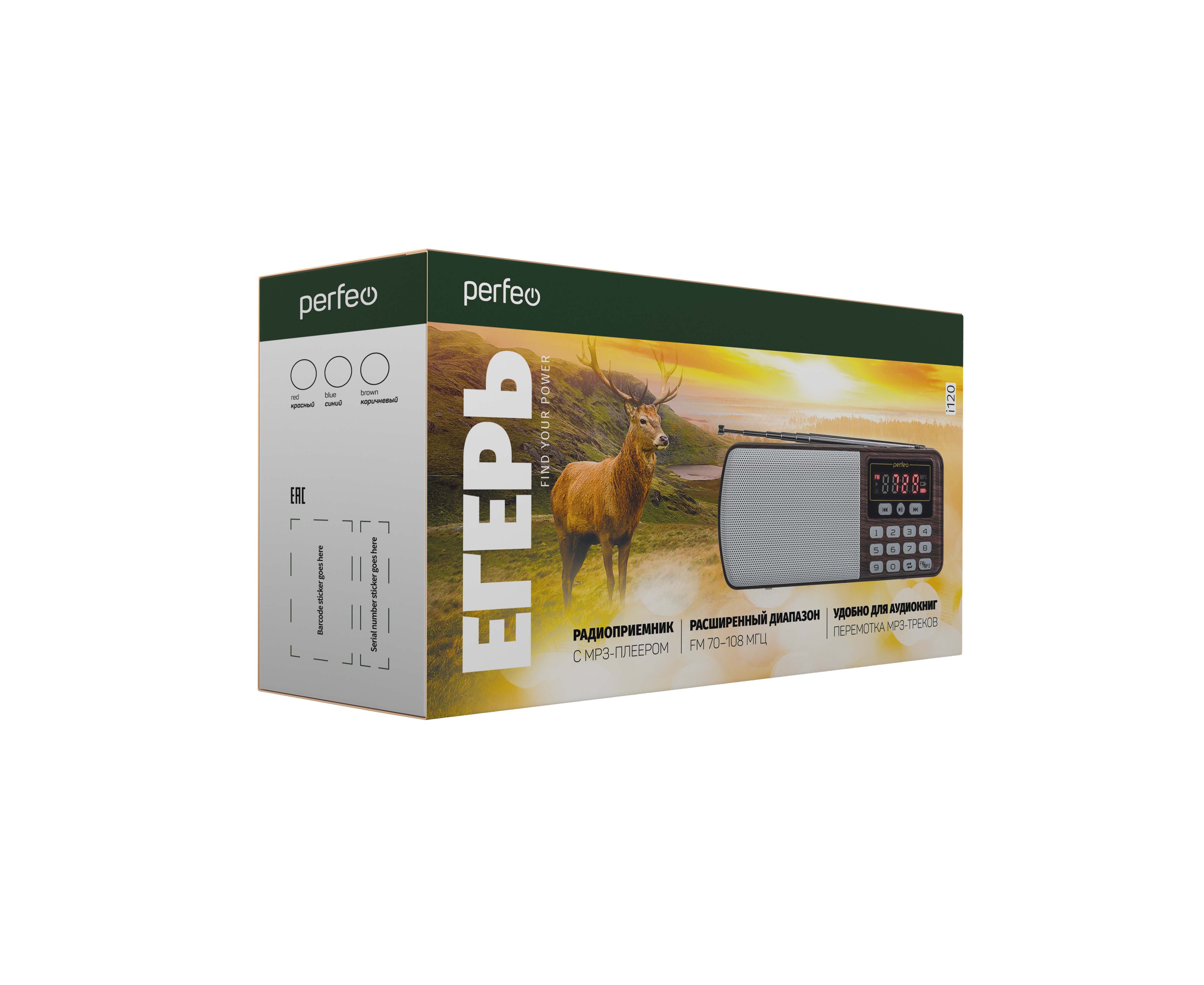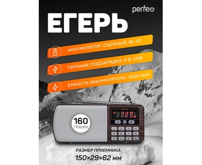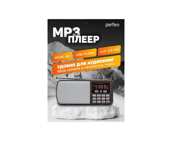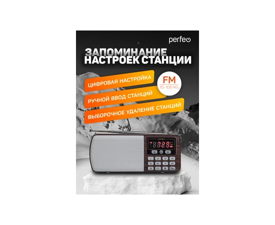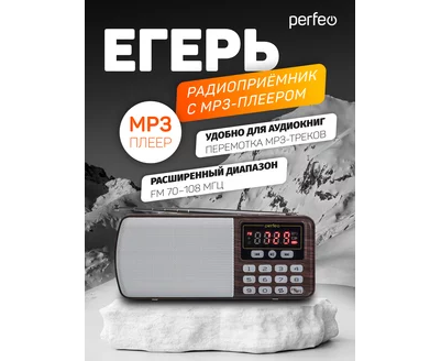 Радиоприемник цифровой Perfeo ЕГЕРЬ FM+ 70-108МГц/ MP3/ питание USB или BL5C/ Коричневый (i120-BK), (Арт. PF_A4463)