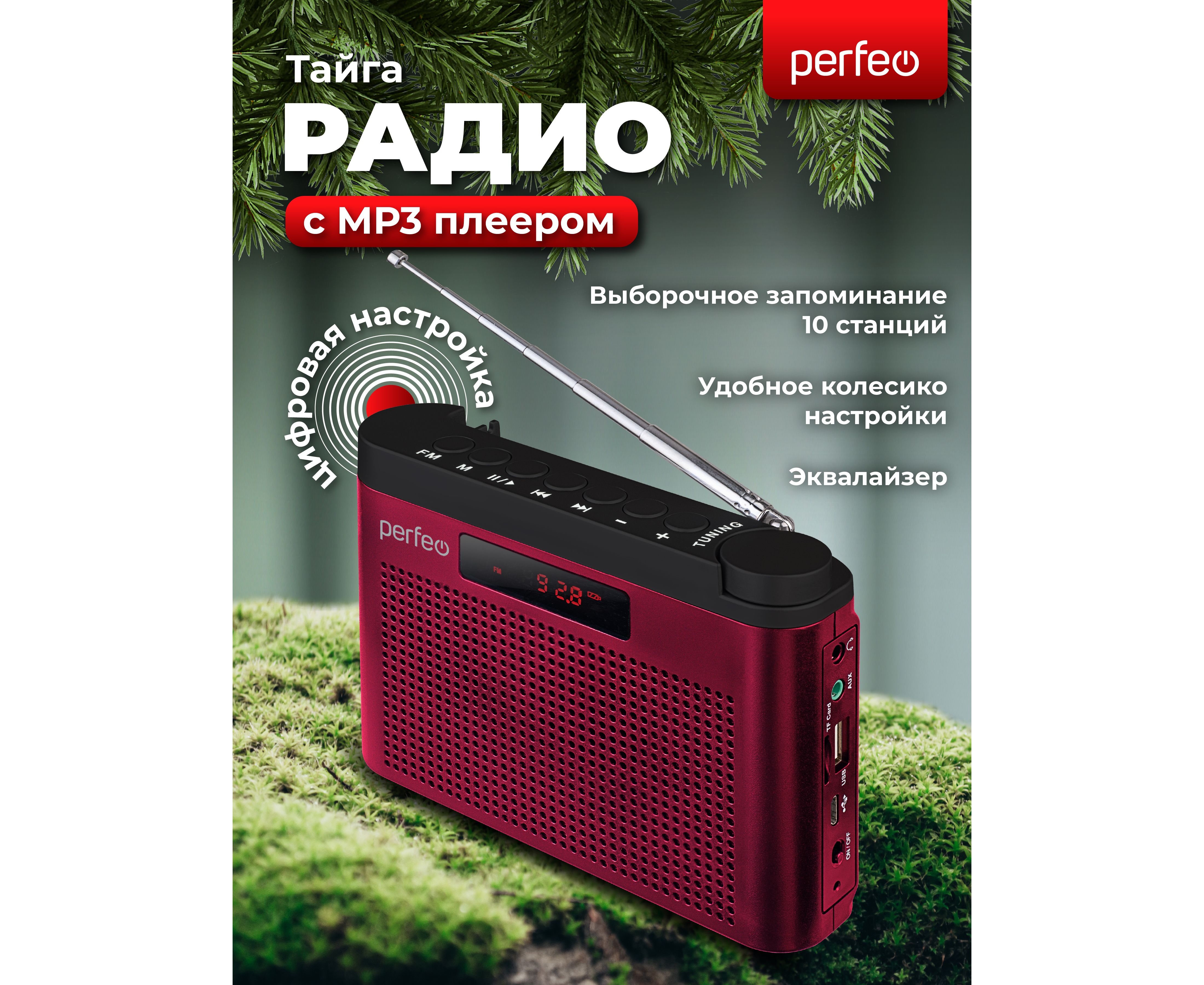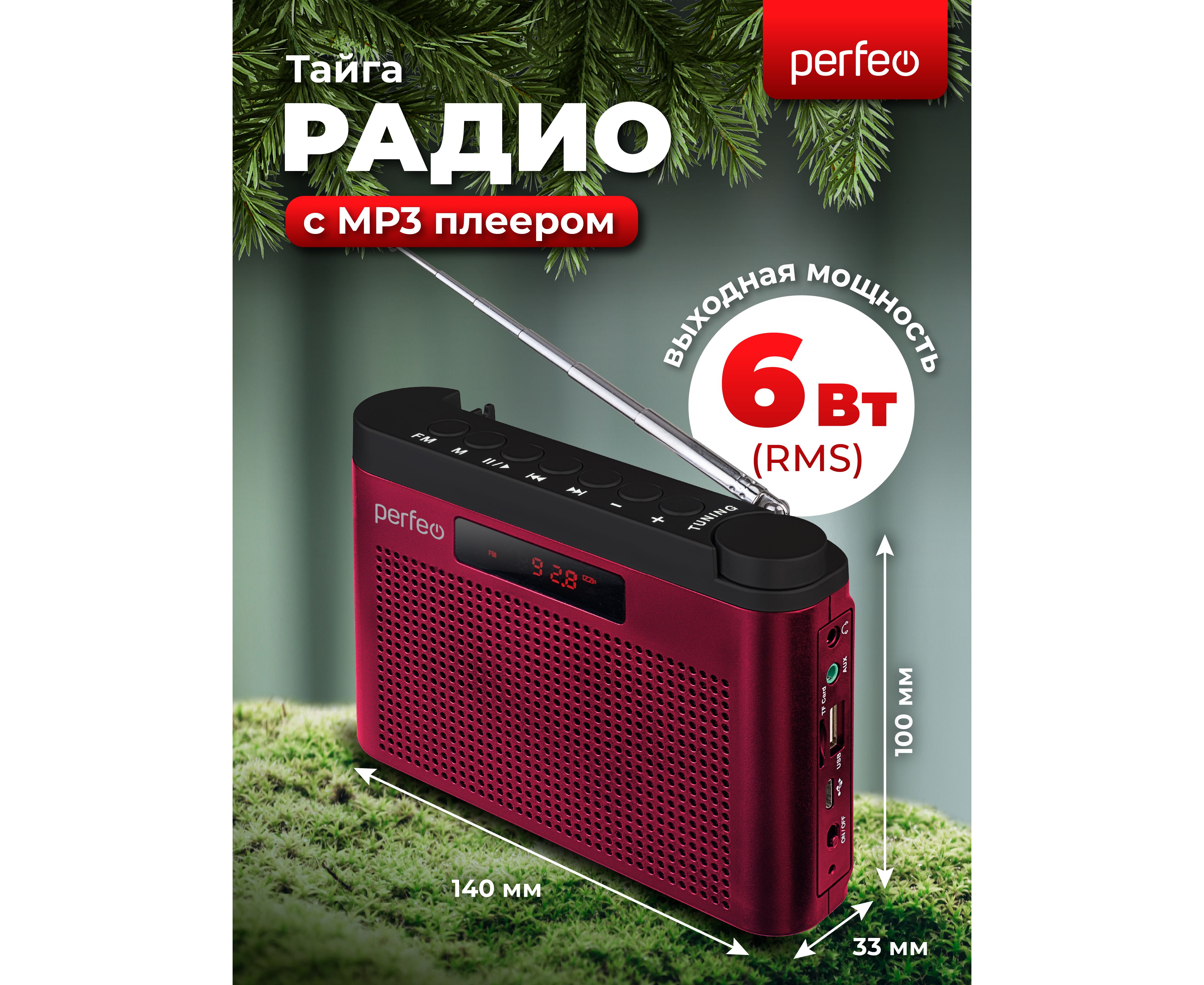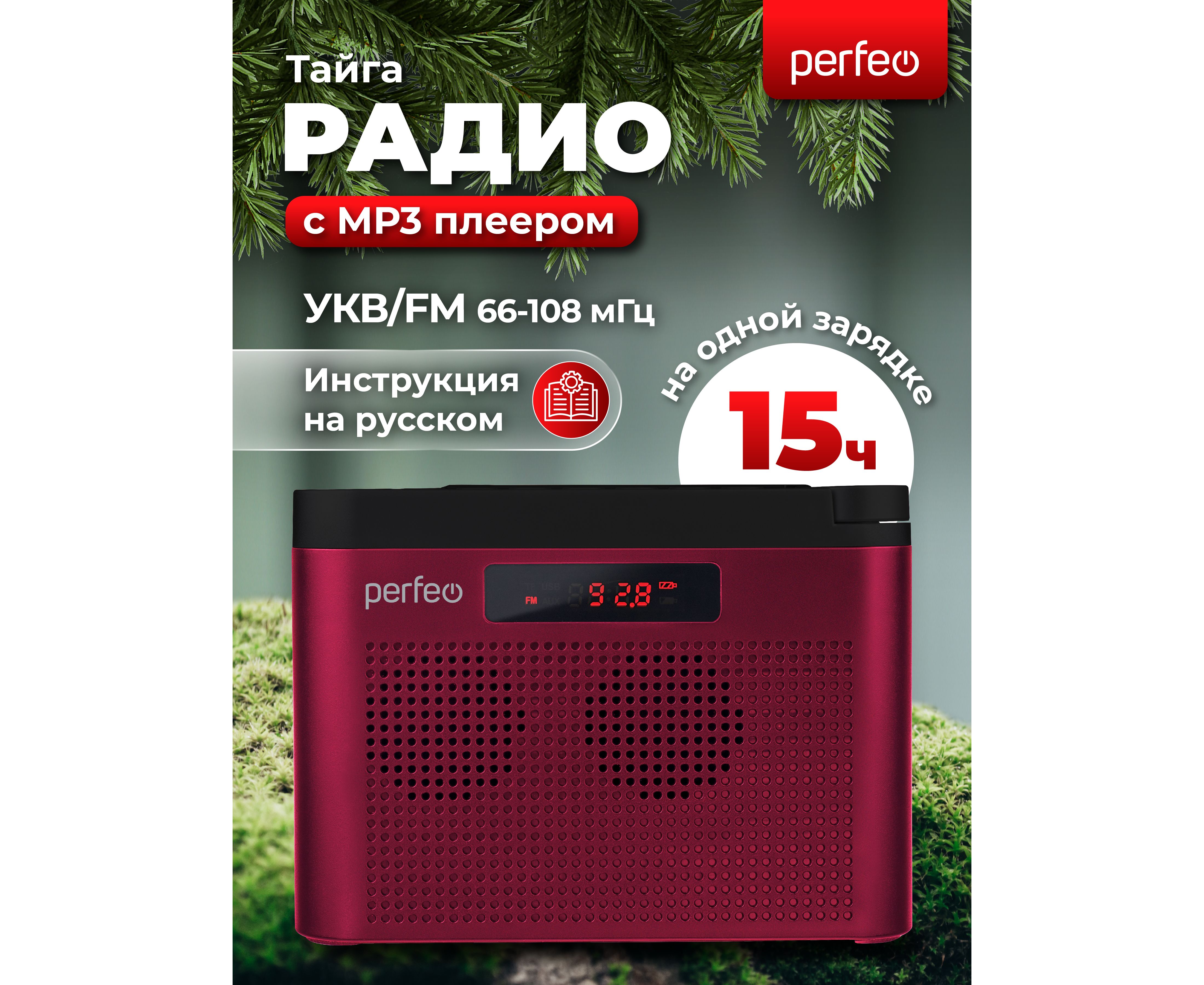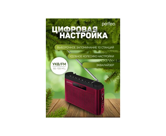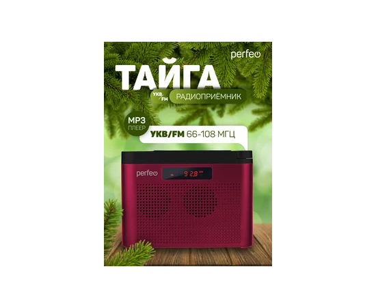 Радиоприемник цифровой Perfeo ТАЙГА FM+ 66-108МГц/ MP3/ встроенный аккум, USB/ Бордовый (I70RED), (Арт. PF_C4940)
