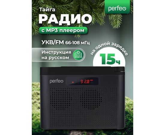 Цифровой радиоприемник Perfeo ТАЙГА FM+ 66-108МГц/ MP3/ встроенный аккум, USB/ Черный (I70BK), (Арт. PF_C4939)