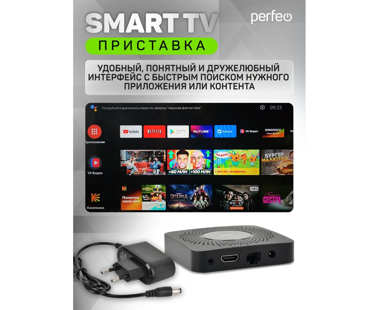 Perfeo SMART TV BOX приставка "VISION 2/16",Allwinner H618,Android 12, 2Gb/16Gb,Пульт Bluetooth — приставка для цифрового ТВ.