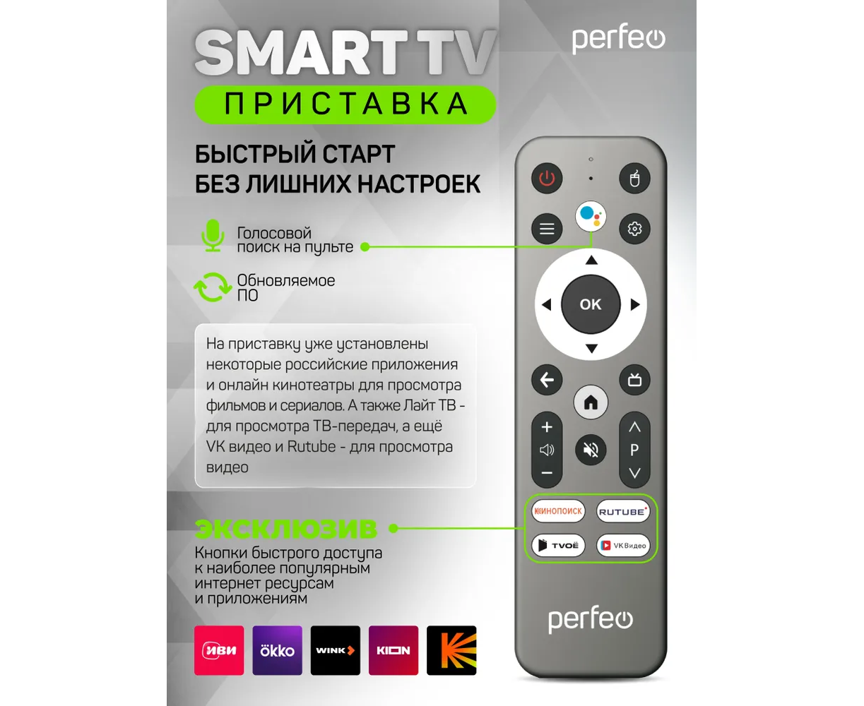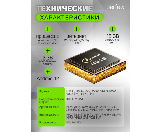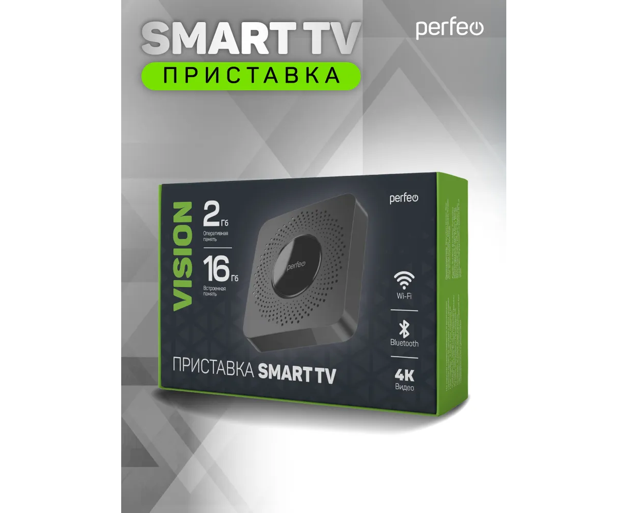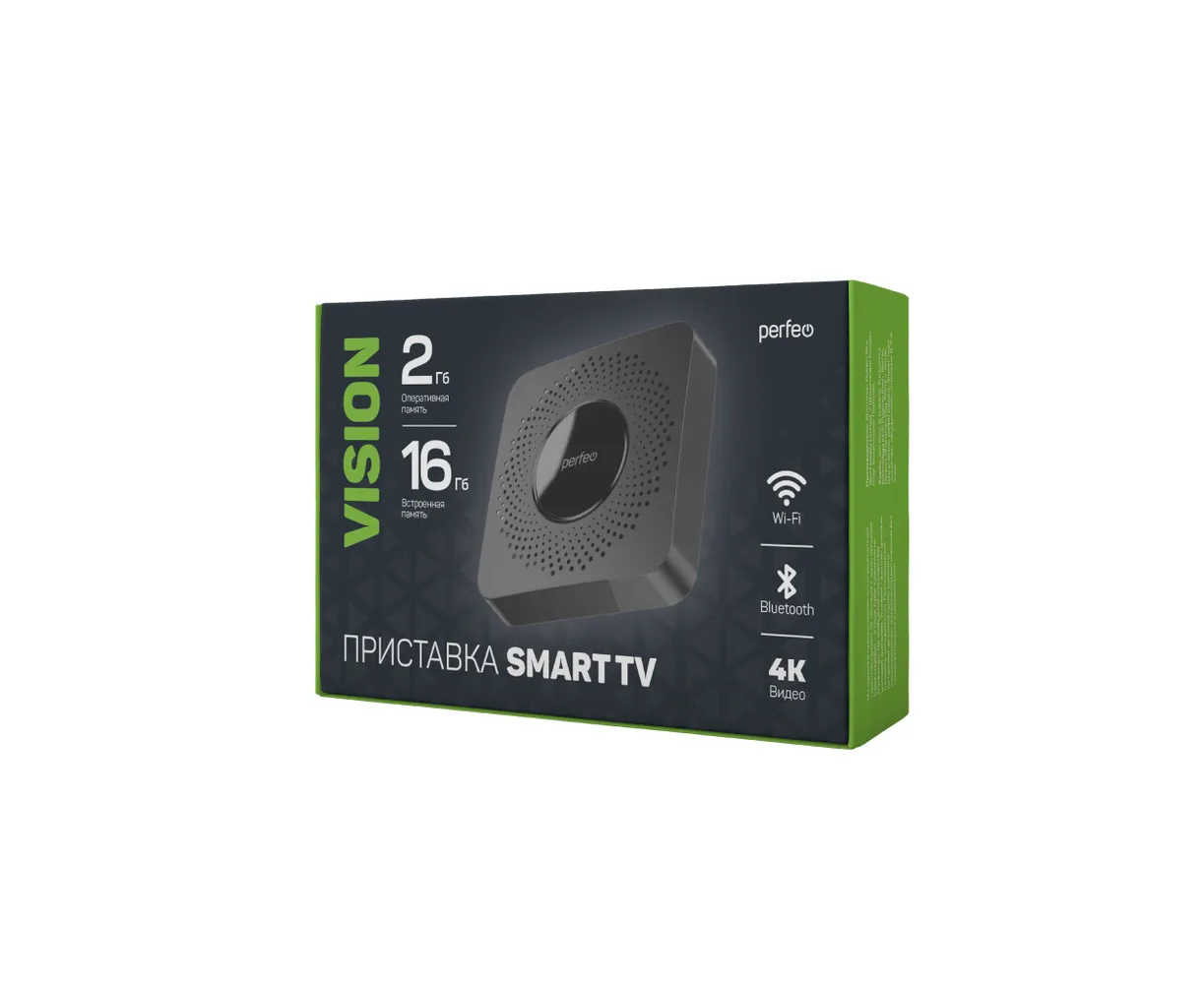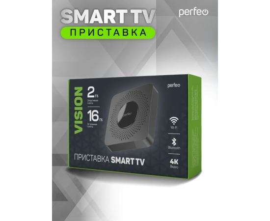 Приставка Perfeo SMART TV BOX "VISION 2/16", Allwinner H618, Android 12, 2Gb/16Gb, Пульт Bluetooth, (Арт. PF_A4560-C)