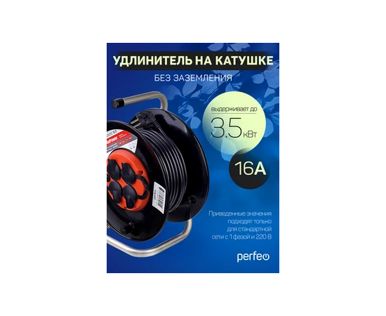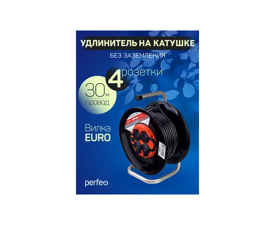 Удлинитель на катушке с заземлением Perfeo "RU POWER" 30м 4гн с т/з 16А ПВС 3х1,5 IP44 (РБК16).