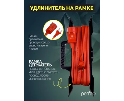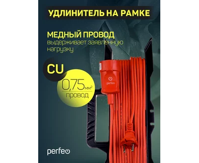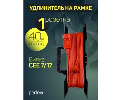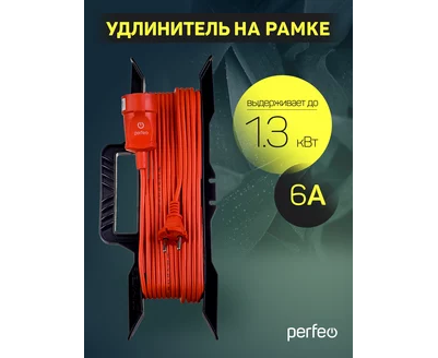 Удлинитель на рамке без заземления Perfeo "RU POWER" 40м 1гн 6А ПВС 2х0,75 (УХ6-101), оранжевый