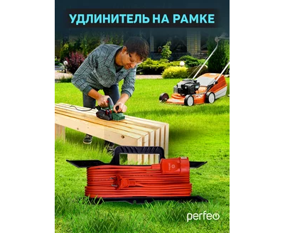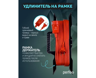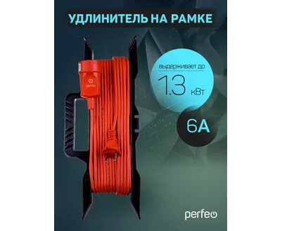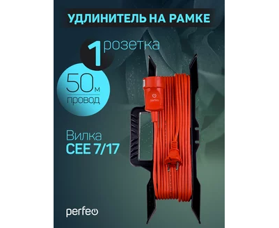 Perfeo удлинитель на рамке без заземления "RU POWER" 50м 1гн 6А ПВС 2х0,75 (УХ6-101) оранжевый.