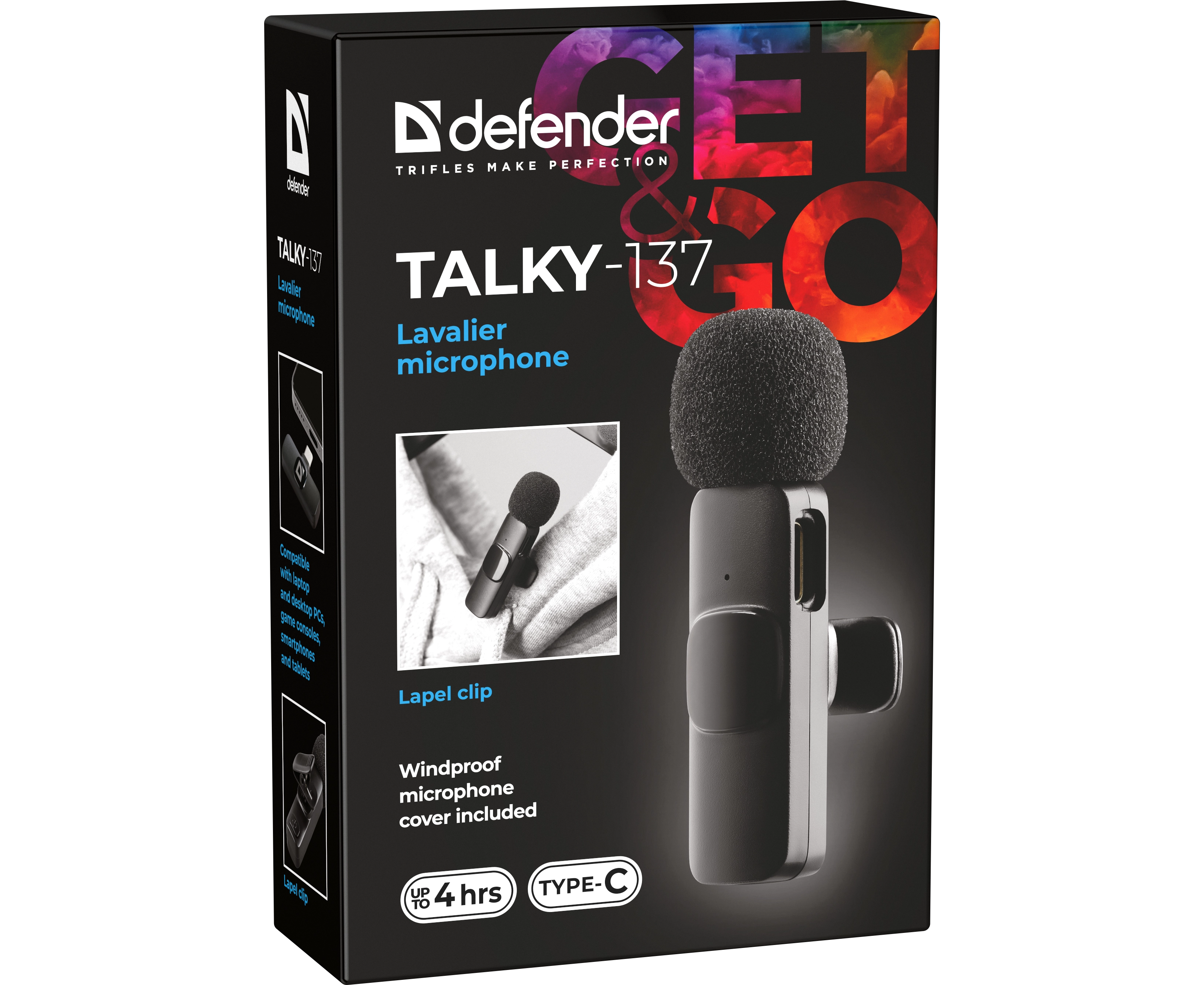 Петличный микрофон DEFENDER Talky-137 wrls, черный, 1шт, адаптер (64147)