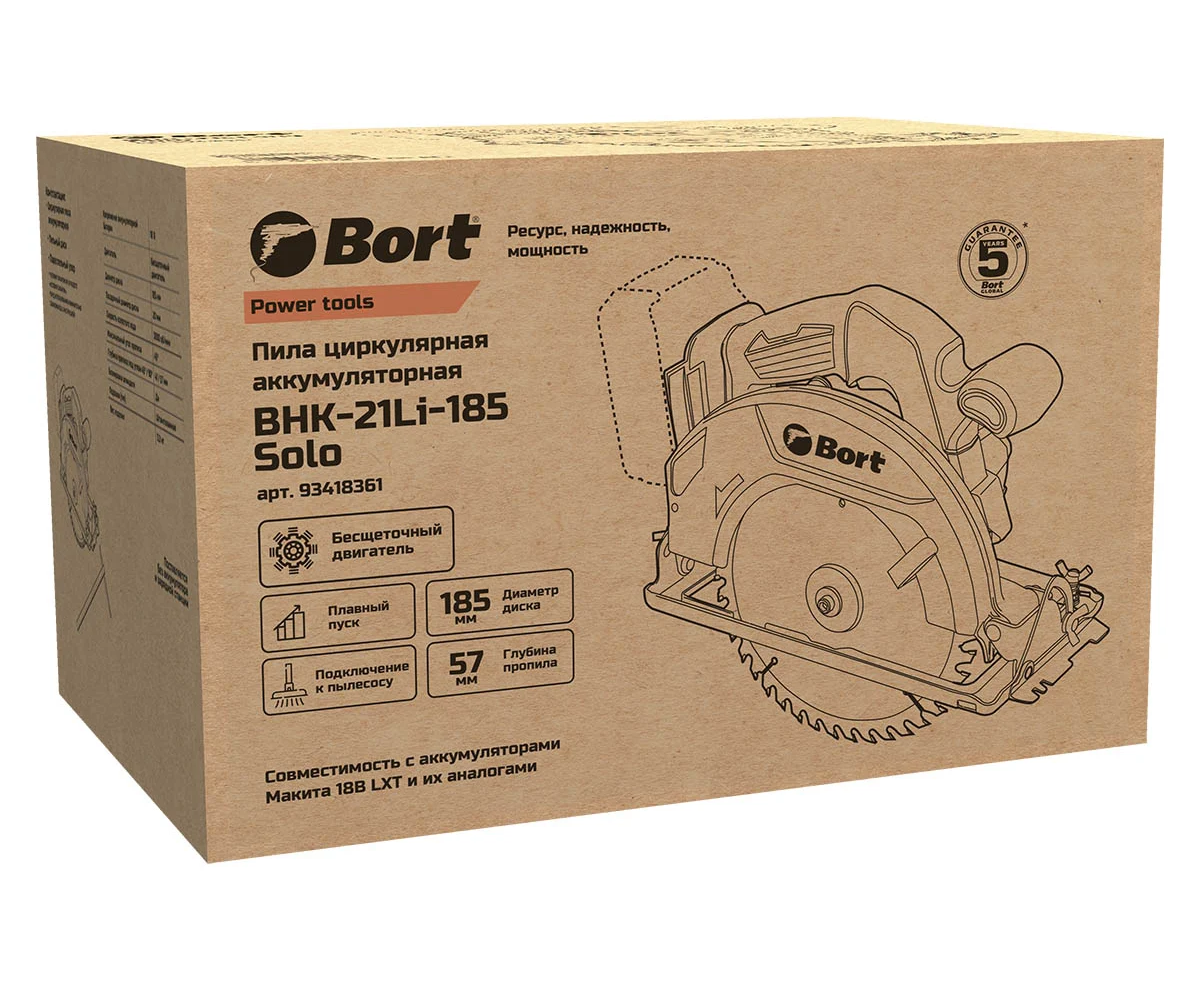 Циркулярная пила BORT BHK-21Li-185 Solo - это мощный и надежный инструмент, специально разработанный для резки различных материалов, включая дерево, фанеру и ДСП.