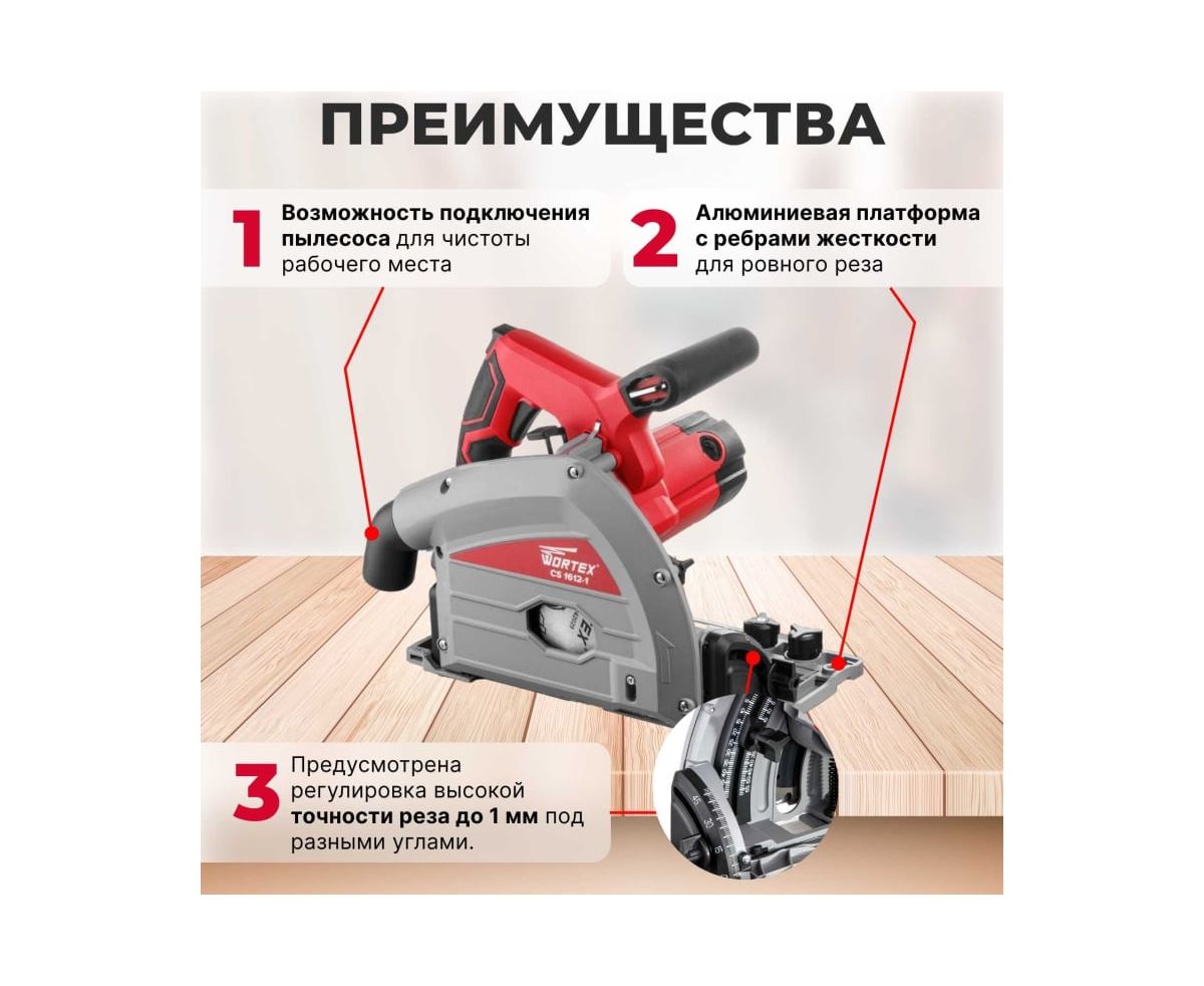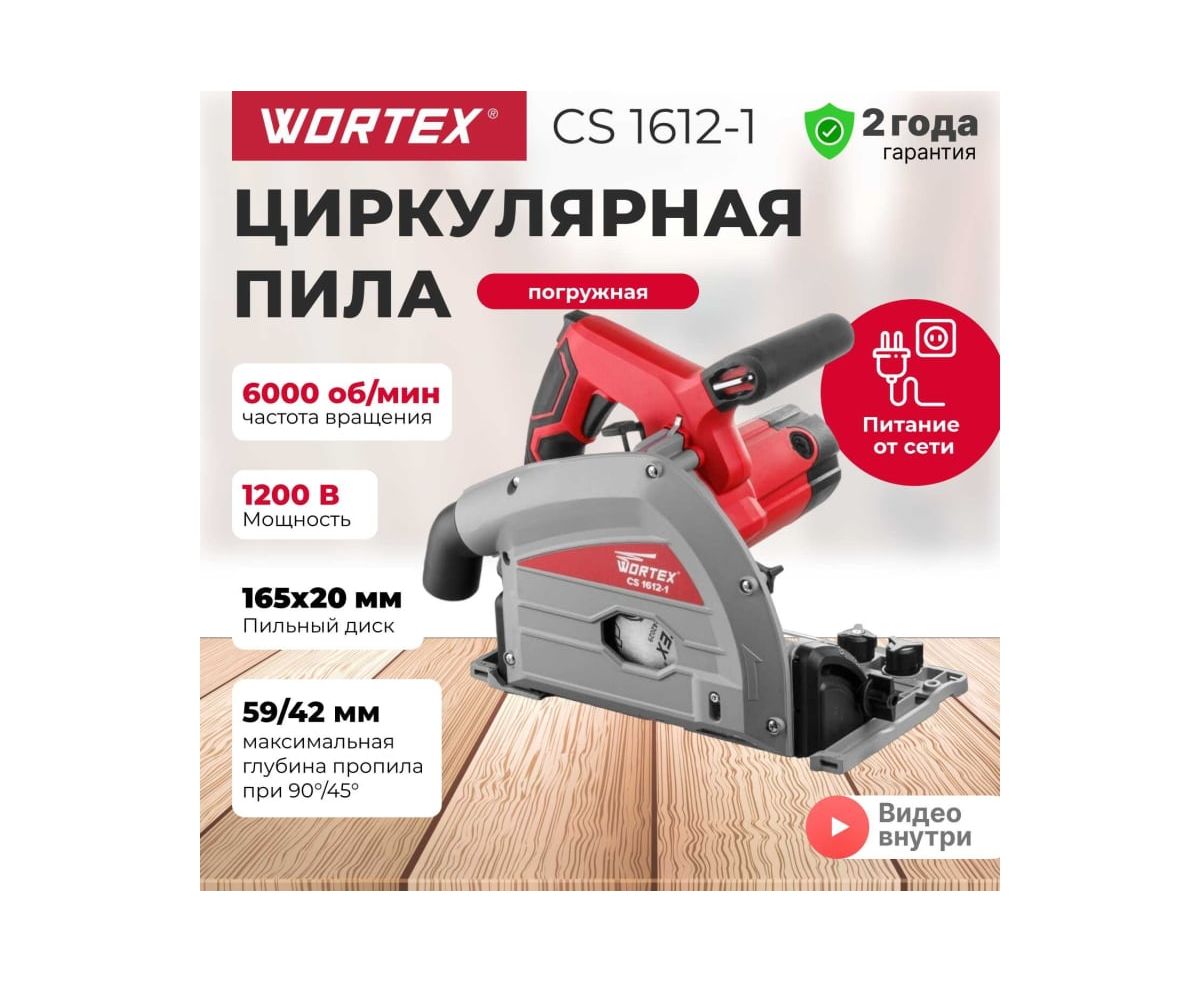 Циркулярная погружная пила WORTEX CS 1612-1 CS16121029 предназначена для продольной и поперечной резки массива дерева и материалов имитирующих дерево, ДСП, фанеры.