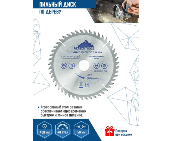 Технические характеристики пильного диска по дереву vertextools 400-48-50