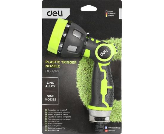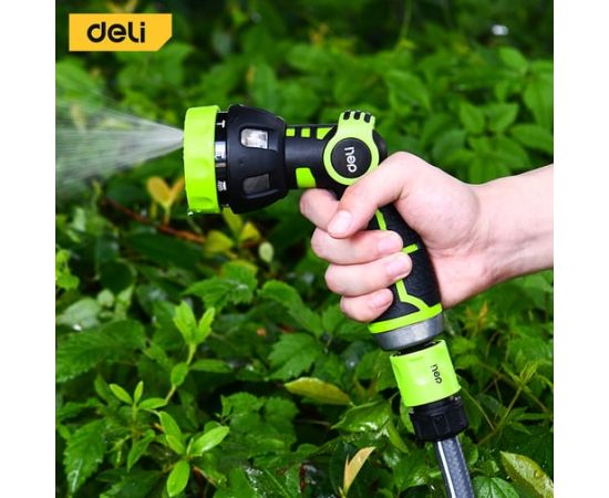 Пистолет-распылитель Deli DL8762 поливочный бескурковый 9 режимов распыления, диаметр шланга 3/4", прорезиненная рукоять