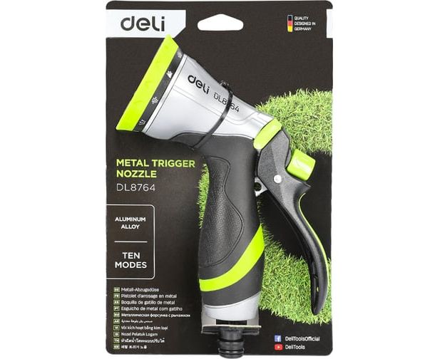 Пистолет-распылитель Deli DL8764 поливочный 10 режимов распыления, диаметр шланга 3/4", прорезиненная рукоять