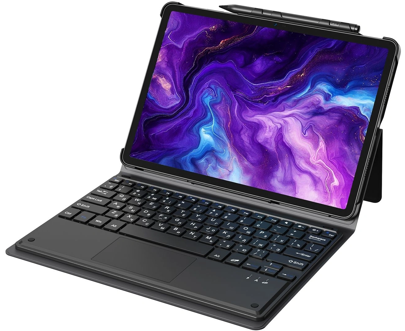 Сетевой адаптер питания; USB-C кабель; активный стилус; набор наклеек; салфетка для экрана; скрепка для извлечения SIM-карты; клавиатура; защитный чехол