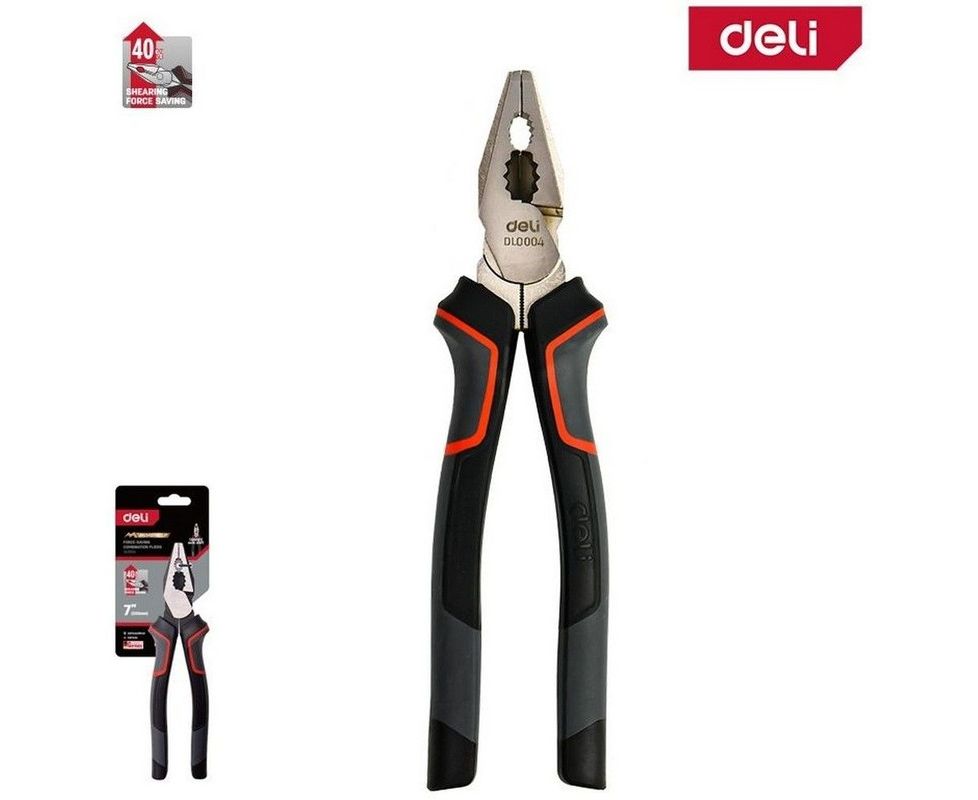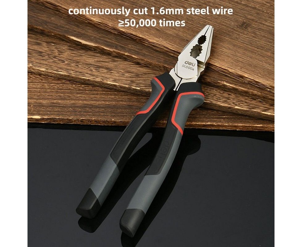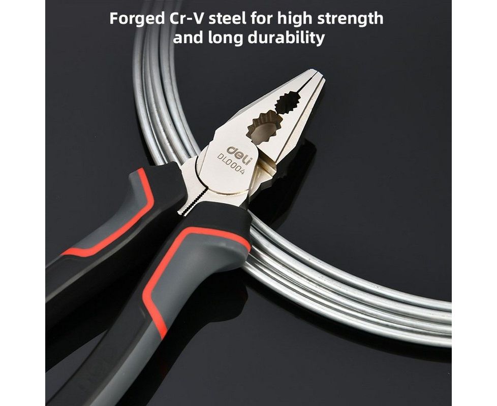Плоскогубцы Deli DL0004 комбинированные 180мм, Cr-V, эксцентриковый шарнир, антикоррозийное покрытие, трехкомпонентн
