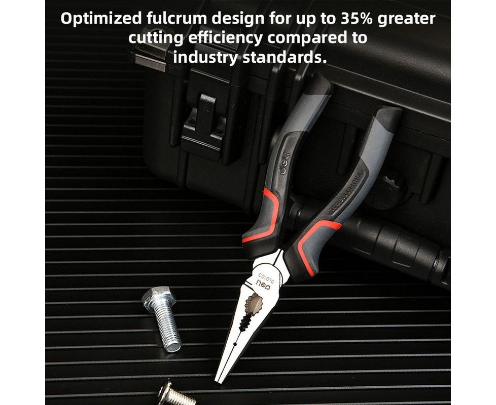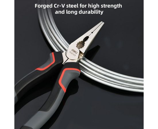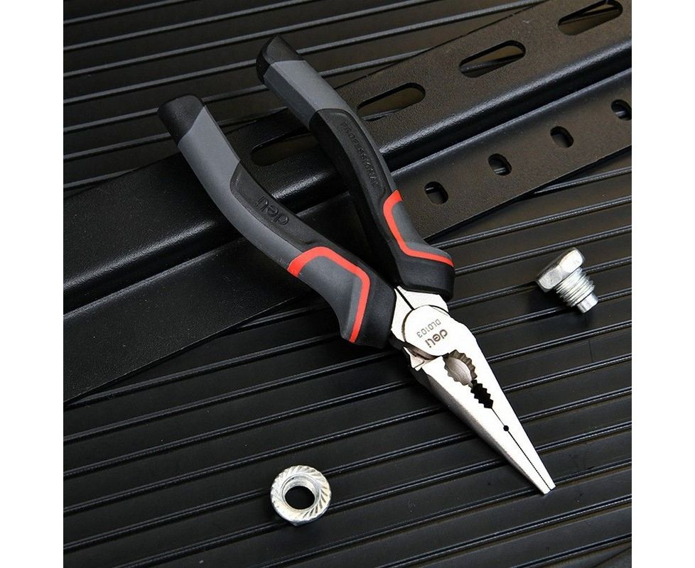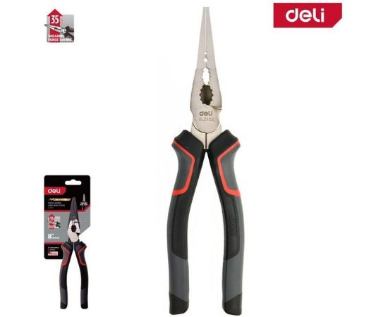Плоскогубцы Deli DL0104 удлиненные 200мм, Cr-V, эксцентриковый шарнир, антикоррозийное покрытие, трехкомпонентная пр