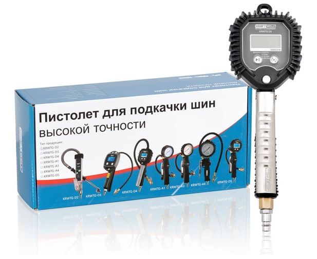 Пистолет для подкачки шин с цифровым манометром KRWTG-D4 предназначен для применения в шиномонтажных мастерских, станциях технического обслуживания автомобилей и мототехники, а также для автолюбителей.