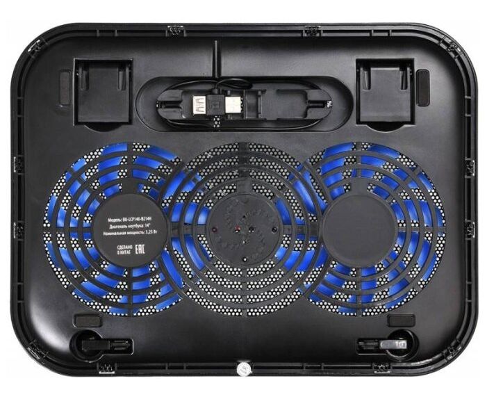 Подставка для ноутбука Buro (BU-LCP140-B214H) черный 14"338x255x22мм 1xUSB 2x 140ммFAN 480г металлическая сетка/пластик