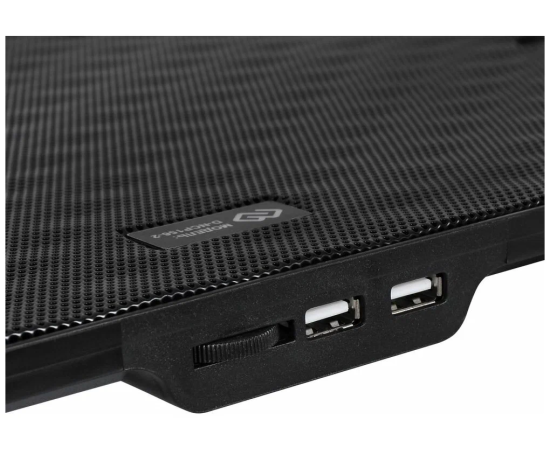 Подставка для ноутбука благодаря своим возможностям станет отличным выбором для мощных игровых систем с диагональю экрана до 15,6 дюймов. В основе модели используется 2 вентилятора диаметром 120 мм. Скорость их вращения может достигать 1500 об/мин, что обеспечивает интенсивный воздуха и эффективное охлаждение ноутбука. Выполнена из качественного пластика и усилена металлическими элементами, за счет чего отличается высокой прочностью и надежностью. Корпус модели выполнен в строгом дизайне, а вентиляторы снабжены подсветкой. Для питания используется USB-порт ноутбука. Также предусмотрено 2 дополнительных аналогичных разъема.