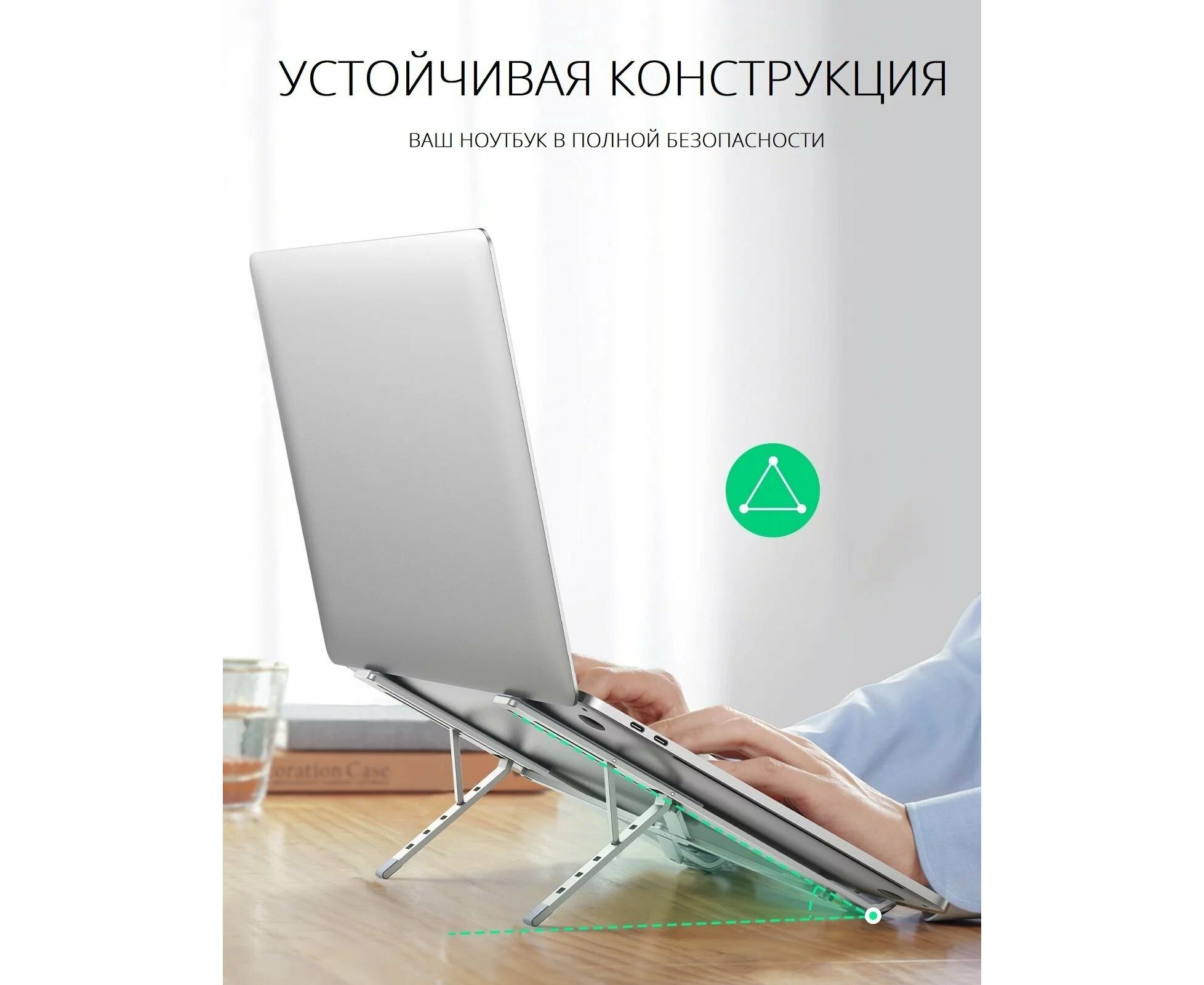 Полая конструкция и угол наклона этой подставки обеспечивают отличный отвод тепла и естественный поток воздуха, предотвращая перегрев ноутбука.