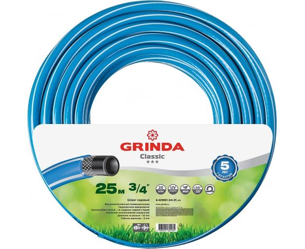 Поливочный шланг GRINDA Classic 8-429001-3/4-25 z02 3/4" трёхслойный армированный 25м, 20атм