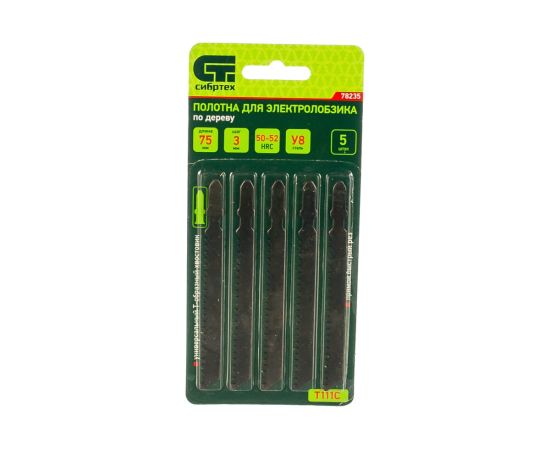 Полотна для электролобзика Сибртех 78235 по дереву, T111C, 75х3мм 5шт