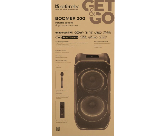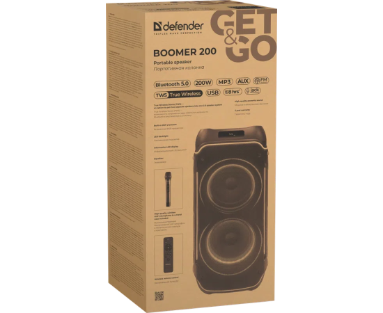 Портативная колонка DEFENDER Boomer 200 200Вт, BT/FM/TF/USB/MIC/AUX/GT 65201