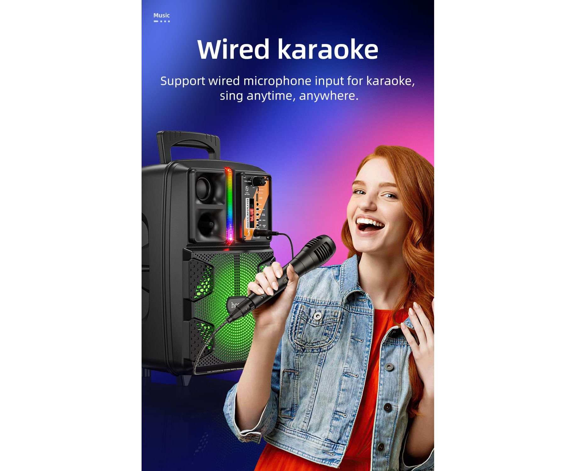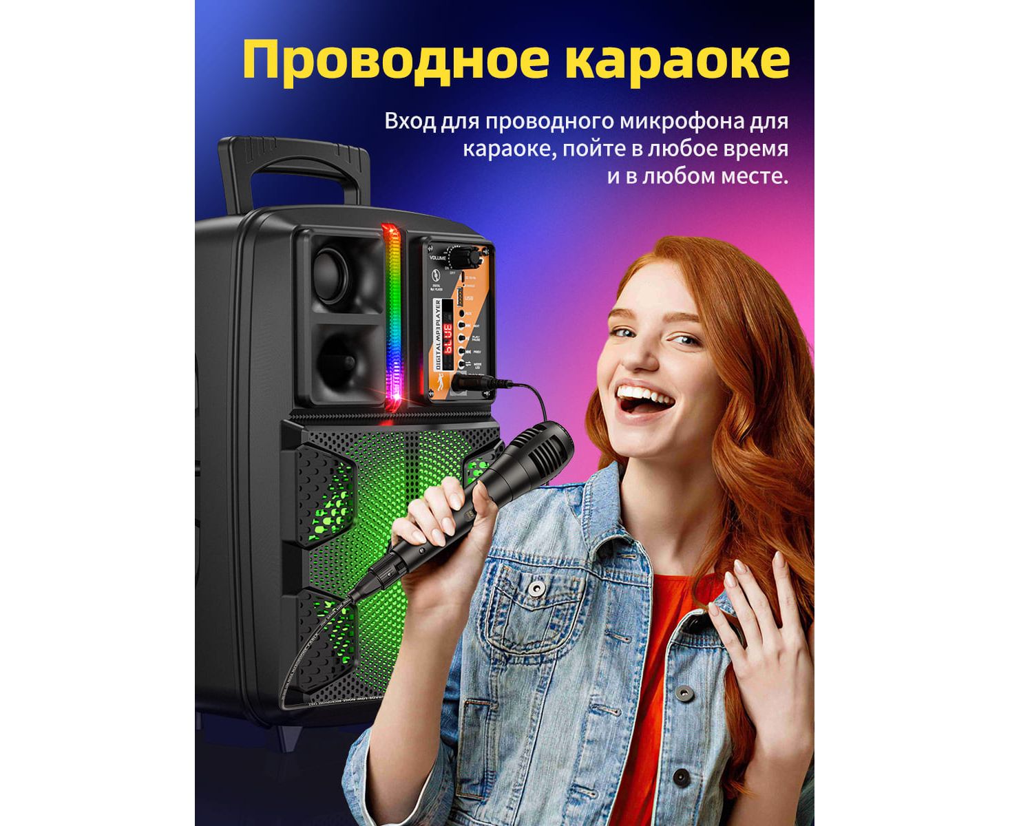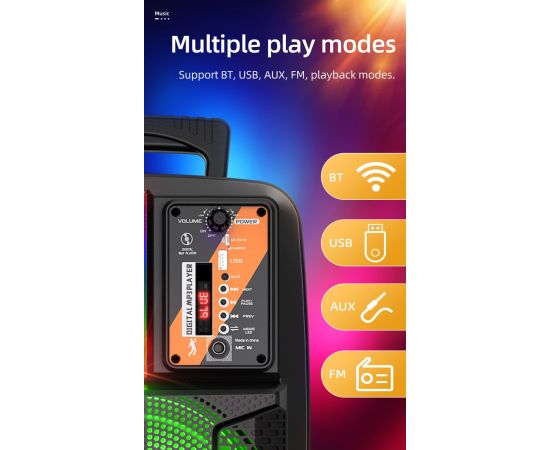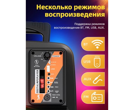 ИнтерфейсыAUX, Bluetooth, USB, FM-радио, микрофон в комплекте