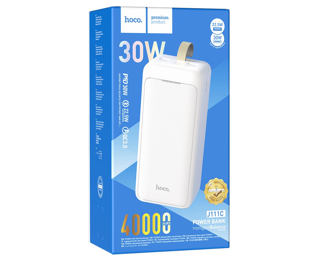 Портативный аккумулятор HOCO J111C Smart charge, 40000 мА?ч, белый