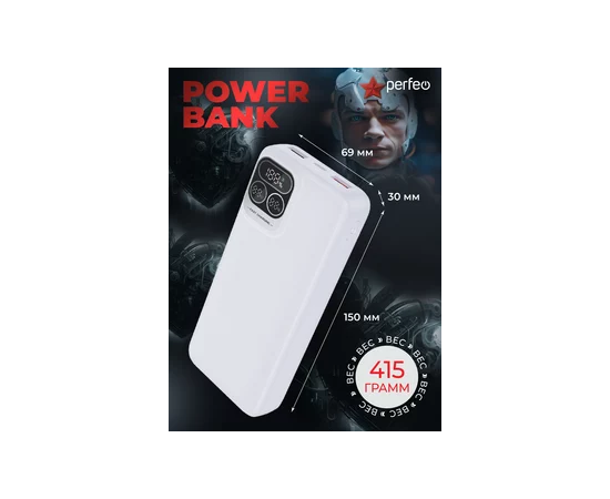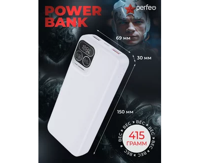 Повербанк Perfeo Atomic Age 20000 mAh/LED дисплей/PD + QC 3.0/Type-C/2 USB/Выход: 5A, max 22.5W/ Белый