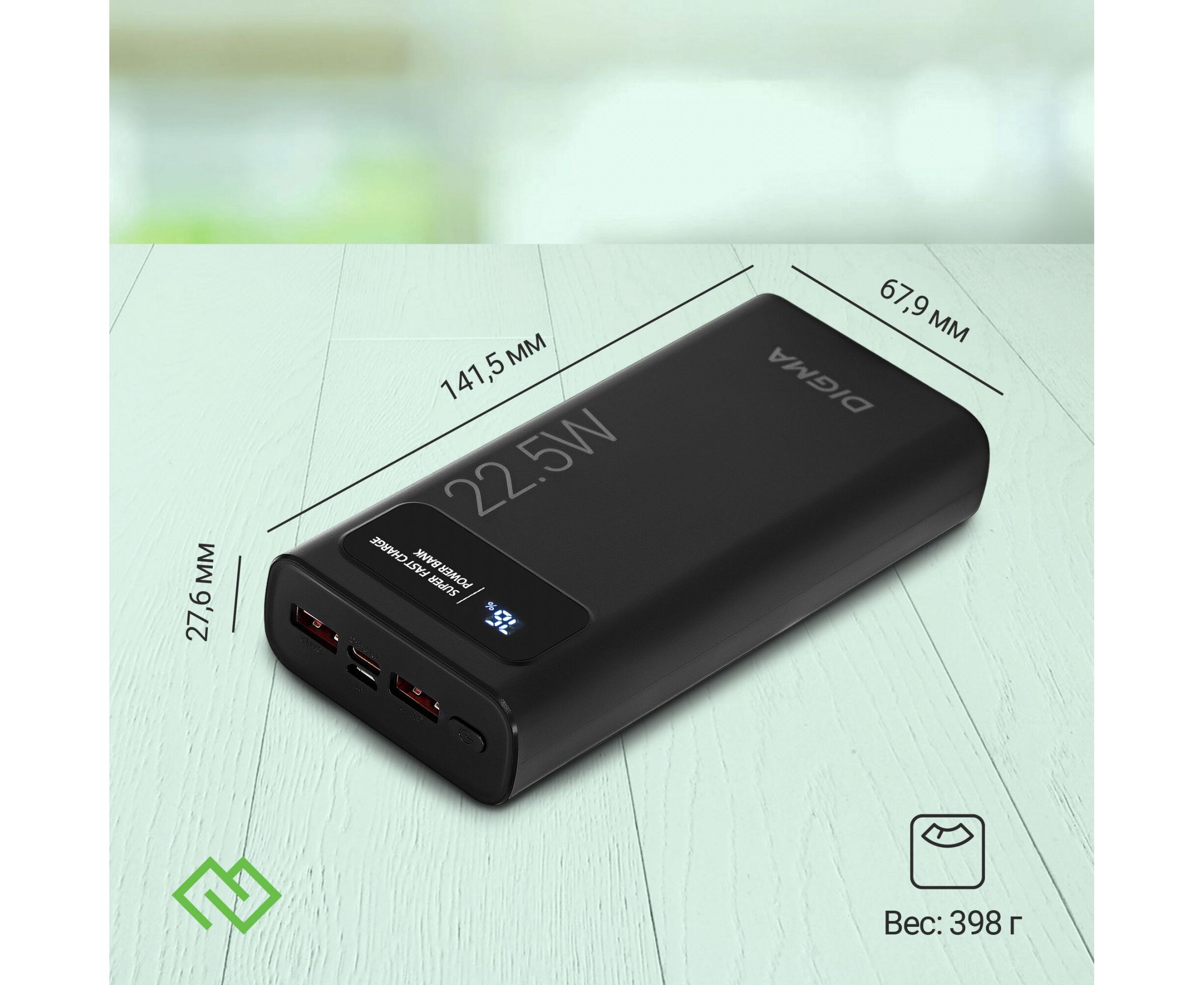 Power Bank Digma DGPF20A (DGPF20A22PBK), 20000мAч черный